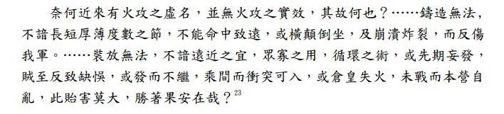 明朝名将戚继光所著的《练兵实纪》(杂集卷四·登坛口授)除了抱怨明军除了火器粗糙低效外,还吐槽了明军放炮放铳乱放,发射时没有秩序不能循环发射,发射时大部分铳使用不当打不出来,即使打出来也打不准,完全不能发挥火器的威力。 明末焦勖纂述的《火攻挈要》(也作《则克录》《增補則克鏼》)也吐槽明军火器劣质,又吐槽明军军事素养低下。 不知明粉如何评价这两位明朝人对明朝军力的吐槽呢?明朝那些事儿
