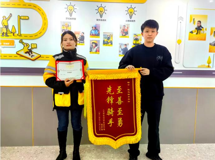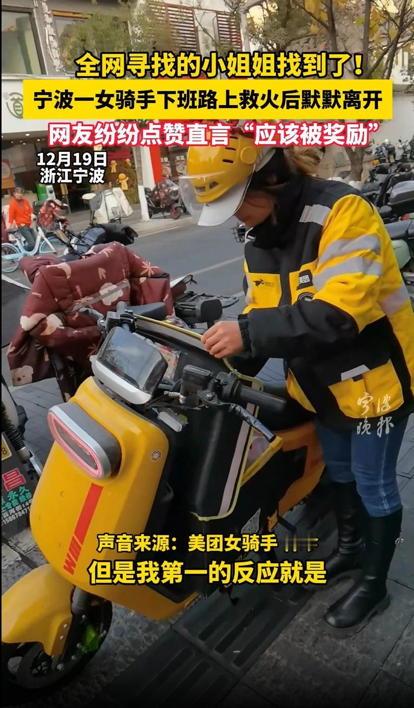 电瓶车突然起火,火舌窜得老高,路边的人一阵慌乱后退。 我正站在远处不敢靠近,眼前却有一位穿着黄衣的女骑手折返夜色,拎着灭火器冲到火前,先让大家退到安全距离,又连续跑回站点取第二个灭火器,十来分钟把火彻底压住,然后不声不响地离开。 那晚我只记得她个子不高,步子稳得让人心里定下来。 视频后来被发到网上,大家都在找这位不留名的骑手。 我也跟着关注,几天后才知道她叫林珍,28岁,来自江西,刚在美团环球银泰站和丈夫一起跑单。 入职时接受过消防培训,知道电瓶起火有风险,但还是在发抖的身体里硬生生把勇气拿出来。 站点后来检查才发现两个灭火器用完了,才知道有人在关键时刻冲上去。 12月19日,浙江首家骑手之家中心店启用,当天美团相关负责人把先锋骑手的荣誉授给林珍,送上锦旗和奖励金。 作为亲眼见证过那场火的人,我看着这份认可,心里很踏实:有人在街头守护市民,也有人在背后守护守护者。 这件事没有大张旗鼓的口号,只有一场真火和一个迅速的选择。 向林珍致敬,也为平台的及时表彰点赞。 希望更多人学一点点消防常识,关键时候多一份勇敢和专业;也期待更多像骑手之家这样的温暖空间,让每一次善意都被看见、被接住。
