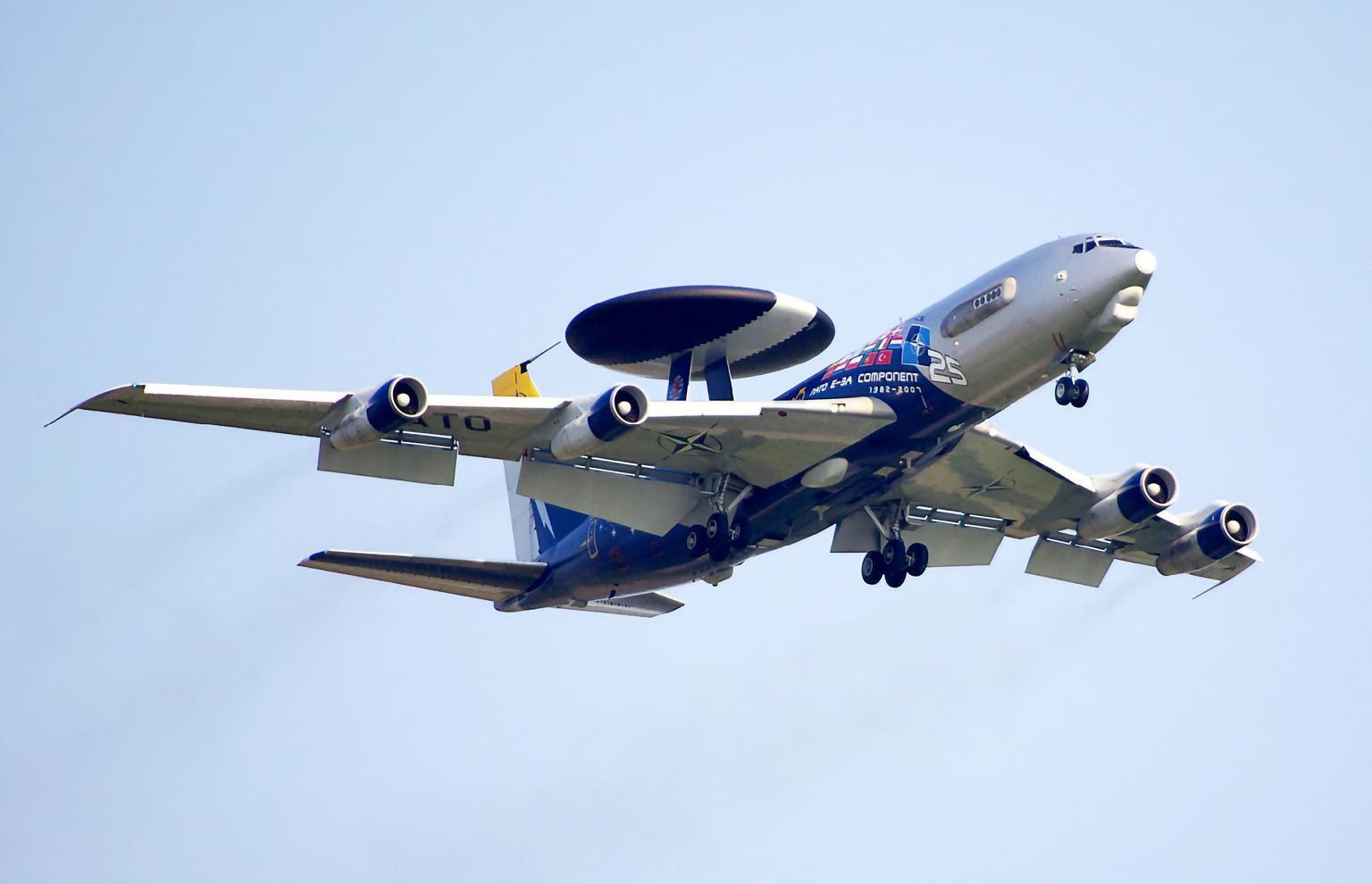 美国E-3“望楼”预警机E-3是波音公司生产的全天候空中预警机,绰号“望楼”(Sentry)。E-3是波音公司根据美国空军“空中警戒和控制系统”计划而研制的,1975年10月首次试飞,1977年开始服役。除美国外,英国、法国和沙特阿拉伯等国都有使用。E-3是直接在波音707商用机的机身上,加上旋转雷达模组及陆空加油模组。该机雷达直径9.1米,中央厚度1.8米,用两根4.2米的支撑架撑在机体上方。AN/APY-1/2水平旋转雷达可以监控地面到同温层之间的空间。E-3使用4台普惠TF33-PW-100/100A发动机,单台推力93千牛。|