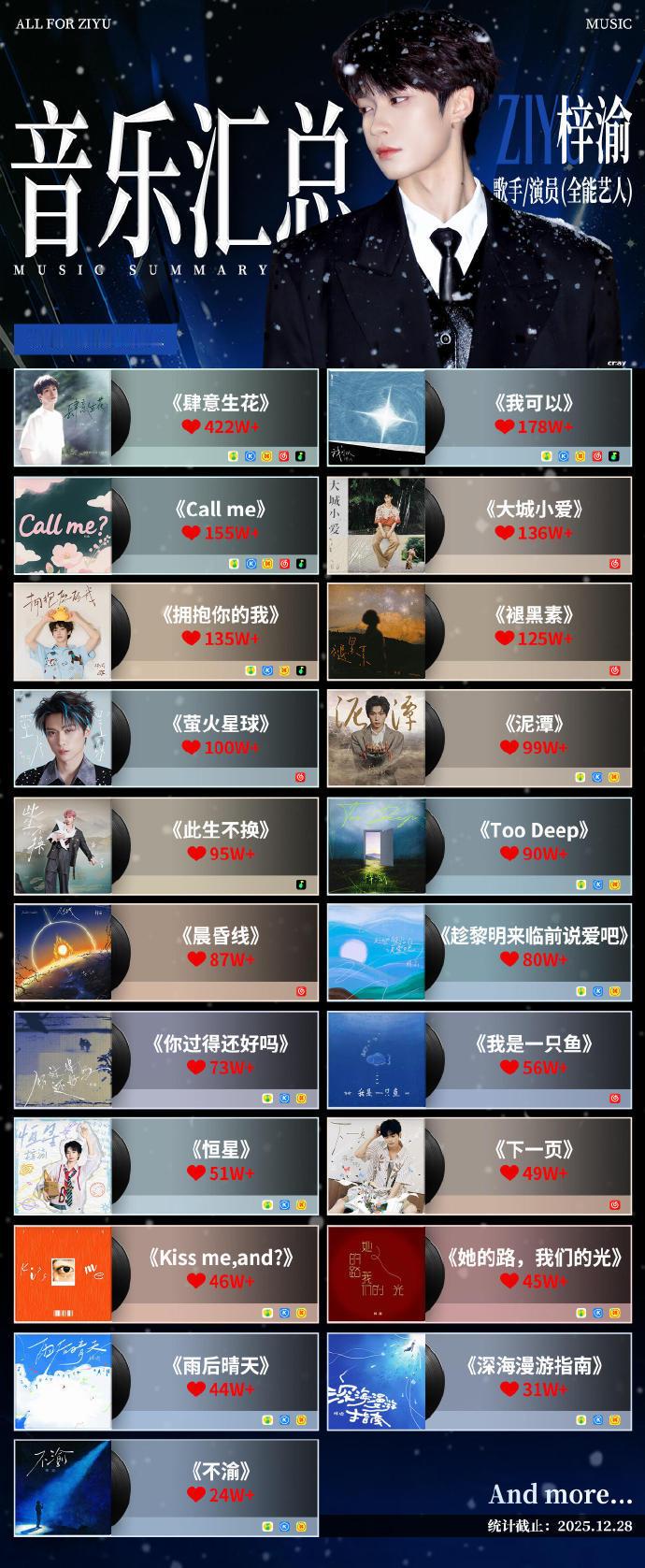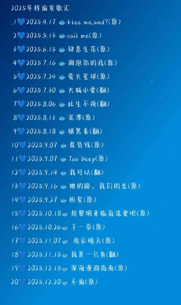 梓渝20首单曲有15首原创5首翻唱梓渝音乐汇总20首战绩 2025年的梓渝20首