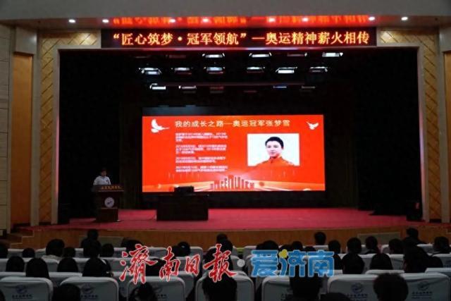 奥运冠军公益行,射击文化润泽校园。活动首站,中心组织射击项目奥运、全运冠军张梦雪及专业团队走进山东技师学院,为师生们带来了一场集“榜样激励、历史文化、物资帮扶、实战竞技”于一体的综合体育课。活动伊始,张梦雪率先登台,她结合自己在赛场上如何克服压力、极致专注的奋斗故事,生动诠释了“专注、坚韧”的射击精神,用金牌背后的汗水勉励学子们在技能学习中追求卓越,为活动奠定了热血激昂的基调。随后,中心为师生们安排了一场生动的“山东射击发展史”主题宣讲。通过深入浅出地梳理山东射击运动从无到有、从弱到强的奋斗历程,一个个鲜活的历史瞬间让同学们深刻理解了山东体育人代代相传的奋斗精神,极大地增强了师生们的体育文化自信。活动期间,中心还向学校捐赠了体育器材,以实际行动助力校园体育发展。在活动的压轴环节,中心将专业光电射击系统带入现场。在专业教练的指导下,同学们兴奋地进行了举枪、瞄准、击发的实战体验。为增加活动的趣味性与竞技性,现场还根据打靶成绩评选出前三名“校园神枪手”并颁发了纪念品。这不仅是对成绩的肯定,更是一份关于“突破自我、勇争第一”的特殊鼓励,将现场气氛推向了高潮。