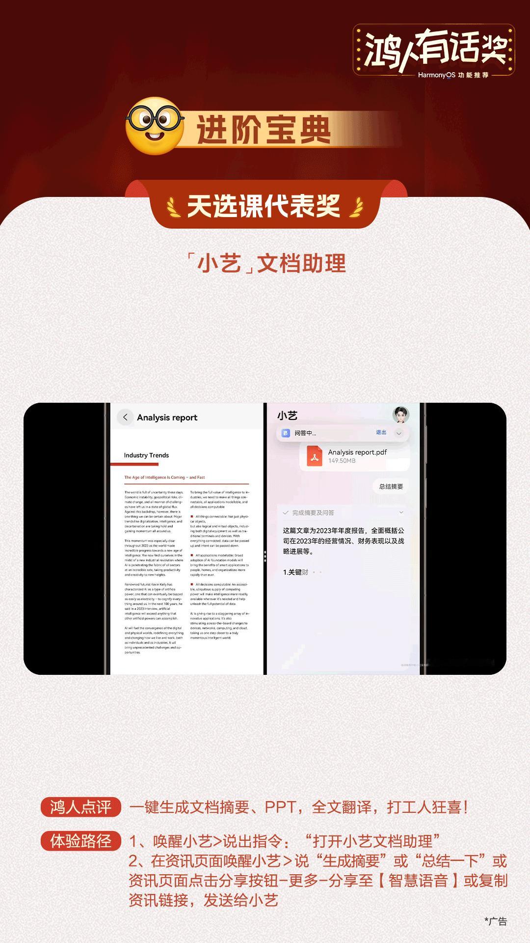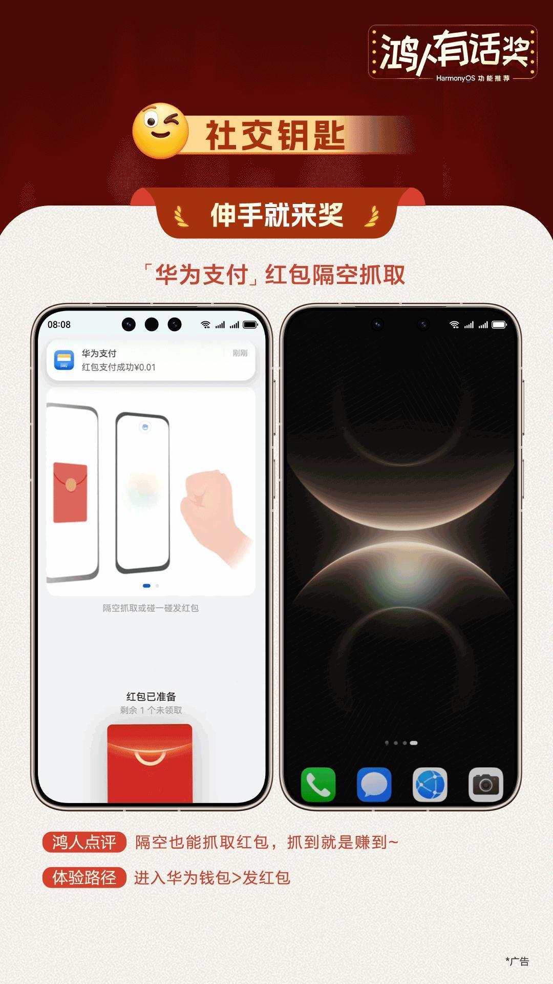 用了就回不去的手机功能 升级HarmonyOS6后我感觉华为手机直接开挂了,很多隐藏功能在生活中非常实用。比如华为负一屏直接把打车、查快递、缴话费的卡片全排列好,不用一个个点开APP,指尖一点就能搞定,省去了找软件的时间。对于手残想要修图的人来说,小艺一句就能搞定,而且AI一键成片也非常实用,随手拍的照片、短视频,AI 自动剪切成卡点视频,还配热门 BGM,不用自己费心找配乐、调节奏,直接发社交平台。现在长按华为手机电源键唤醒小艺,说 “鸿人有话奖” 就能领惊喜,你们快去试试,手慢无!