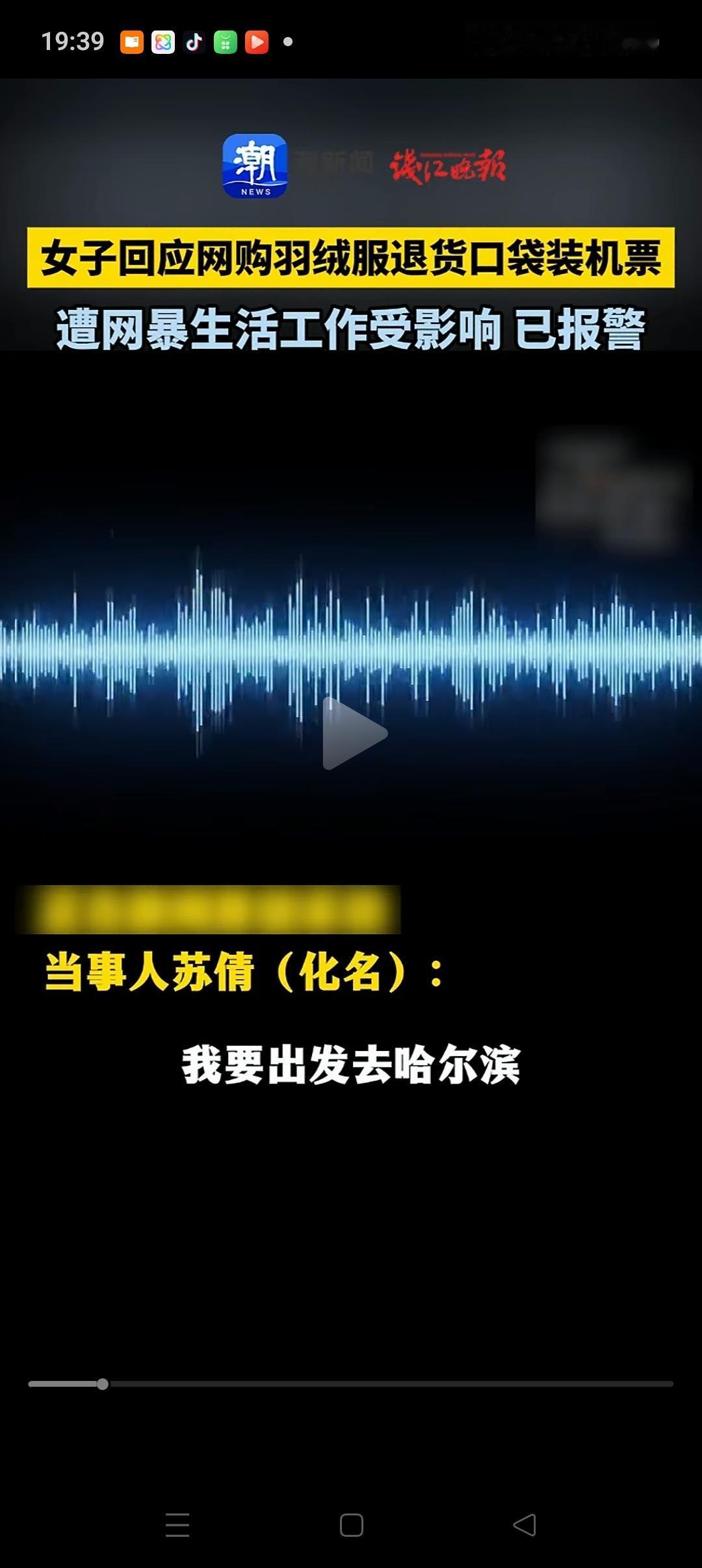 女子白嫖7天羽绒服去哈尔滨旅游后续来了!在苏女士主动联系商家,表示会报警后,目前商家已经同意和解退款。 据苏女士透漏:当时她在三亚的时候,买了一件羽绒服,发现吊牌打结,所以她联系客服想退货退款。但是因为她买了凌晨3点去哈尔滨的机票,又觉得哈尔滨可能会很冷,就把这件羽绒服带到了哈尔滨。她表示自己只是下飞机打的到酒店这一段路穿了一次这个羽绒服。 但是根据商家的描述,图片,显示羽绒服确实挺脏的,并不像只穿了这一次。而且苏女士的话,有一点矛盾。如果你不想要这件羽绒服,为什么还要带到哈尔滨去,已备不时之需。 她明明可以带别的羽绒服啊,退货退款交给家里人就好了。显然她说的话有一点矛盾,从始至终她还是有想白嫖这7天的想法。 当然这只是我个人的猜测,不代表大多人的看法,你们是怎么看的呢?