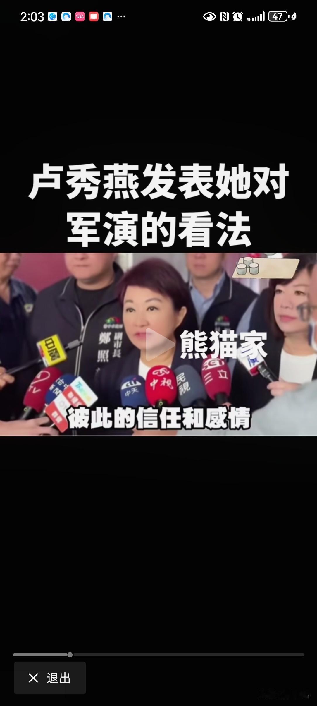 卢秀燕妄议解放军军演!据媒体报道,卢秀燕在采访中表示:军演只会撕裂彼此的信任和感情。我们难道要跟台独分子谈感情? 卢秀燕还妄言议解放军军演:任何危害2300万人生命财产的行为,我们都强烈反对,强烈谴责!真是黑白颠倒,是非不分!从一开始,国台办就指出:解放军军演针对的是极少数台独分裂分子和外部干涉势力,绝非针对广大台湾人民。请问卢秀燕,你是站在台独一边吗? 可见,卢秀燕只不过一政客,极尽圆滑,绝非有担当的政治家!