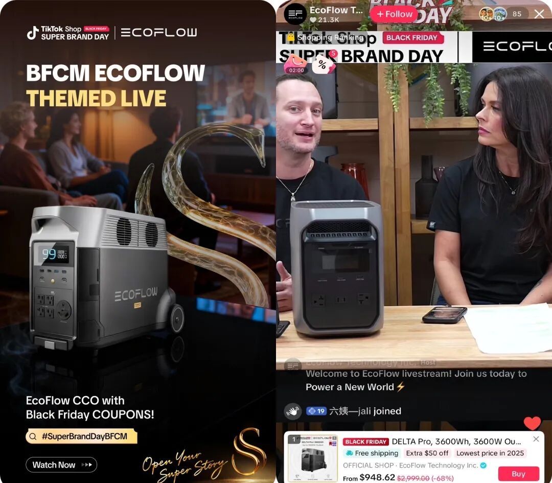比如,便携电源品牌EcoFlow在SuperBrandDay期间推出新品移动电源,并通过家庭露营实拍短视频把产品力融入真实生活场景,仅用两天其日均GMV便突破70万美金,刷新历史纪录——这背后是硬核产品凭借TikTokShop“专业说服+场景共鸣”的双引擎打法,成功实现从技术圈走向大众市场的漂亮破局。