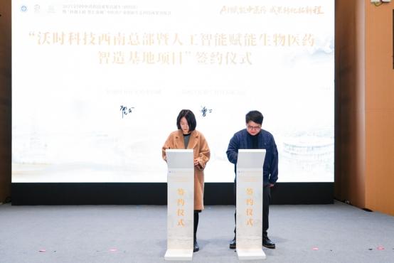 对接会现场,AI医药企业沃时科技现场签约。成都市科技局供图