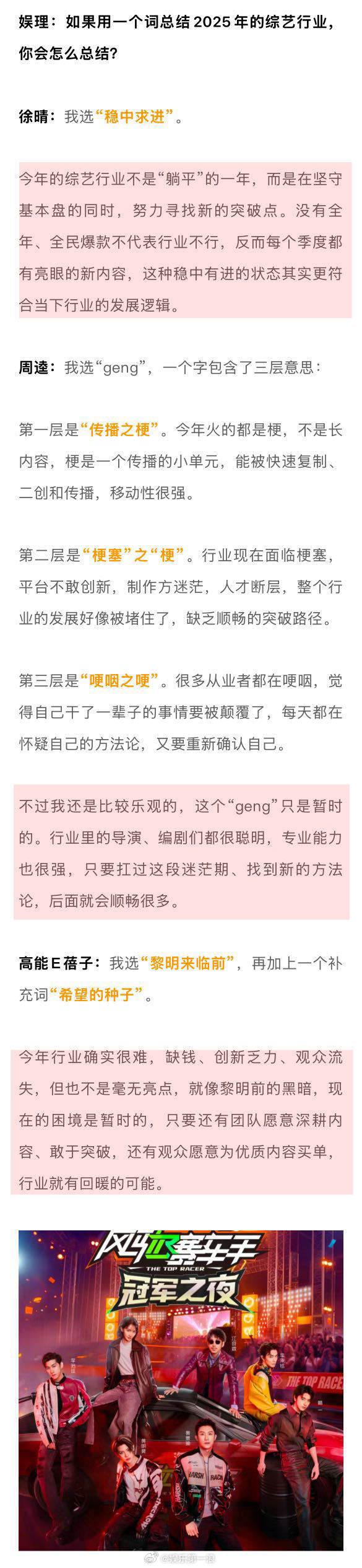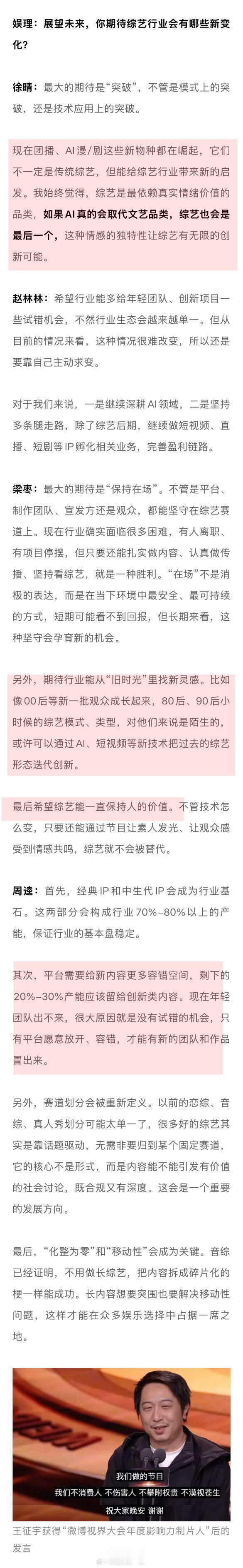 业内谈唐国强刘晓庆回流综艺 2025综艺没有躺平 谈及综艺行业对于AI的运用,综艺制作人赵林林透露:“我们80%的特效包装都是用AI做的,这也是今年制作端最实际的变化。甚至我们还在短视频平台尝试了AI综艺,比如未来AI可否能一比一复制艺人形象,让艺人多一个“分身”录制综艺。现在AI等新技术迭代很快,明年可能会有更大突破。”娱理独家↓