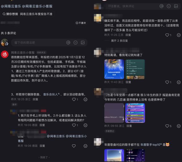这类声音在社交平台上频频出现。不少用户因此对网易云音乐年度报告的统计规则提出质疑,认为其未能真实反映个人年度听歌行为,部分结果甚至与自身音乐偏好“严重脱节”。