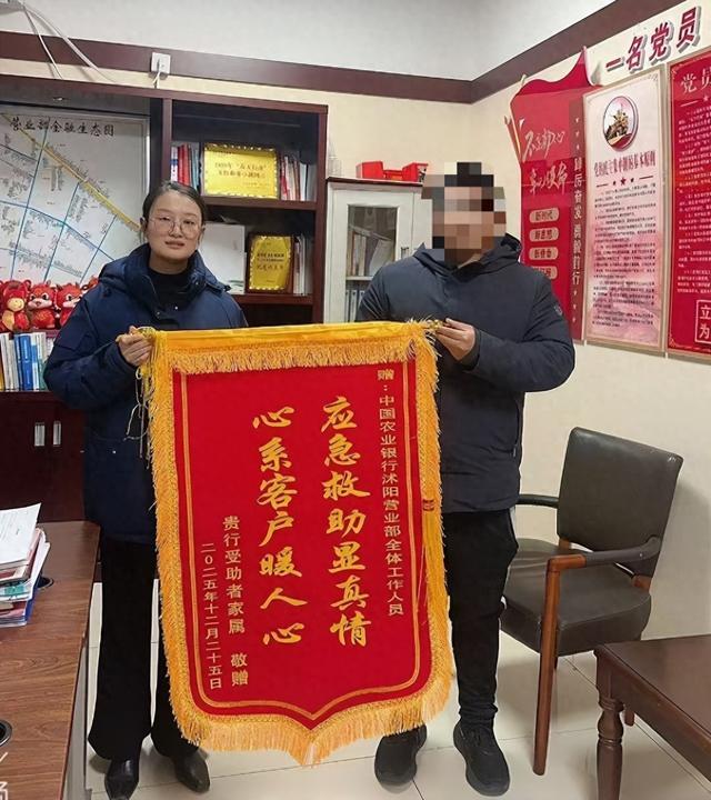 12月25日下午,中国农业银行股份有限公司宿迁分行沭阳县支行营业部(以下简称“农业银行沭阳县支行营业部”)暖意涌动。客户李先生手捧锦旗快步走进网点,握住负责人的手激动地说:“四个月前我母亲在这里突然晕倒,如今她康复出院,特地嘱咐我一定要来当面道谢!”这感人的一幕,正是农业银行宿迁分行践行“以客户为中心”服务理念的生动缩影。