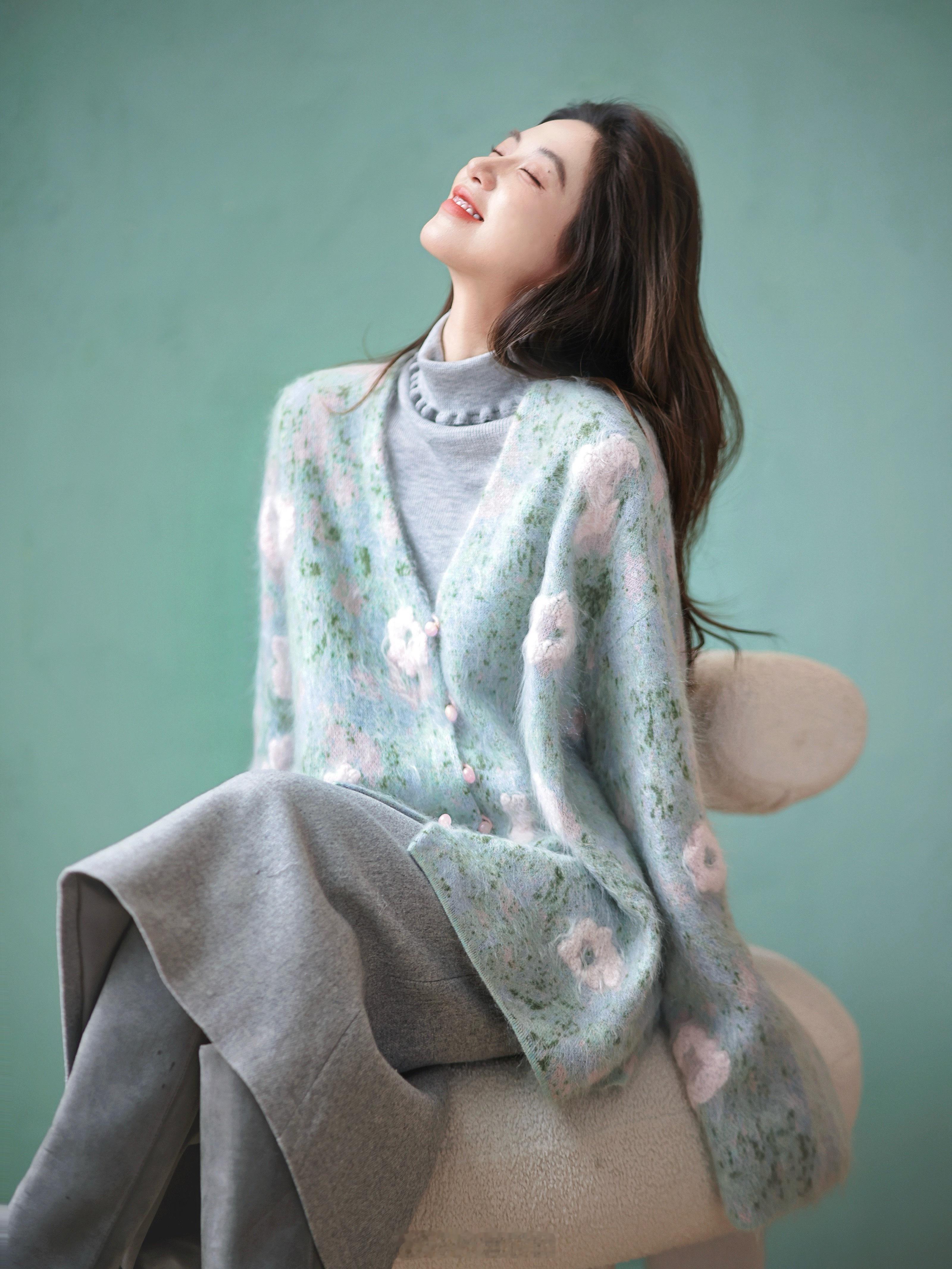 本粒一眼心动的拉毛毛衣!100山羊绒 软糯细腻 肤感赞到不用多讲这个立体绣花 真