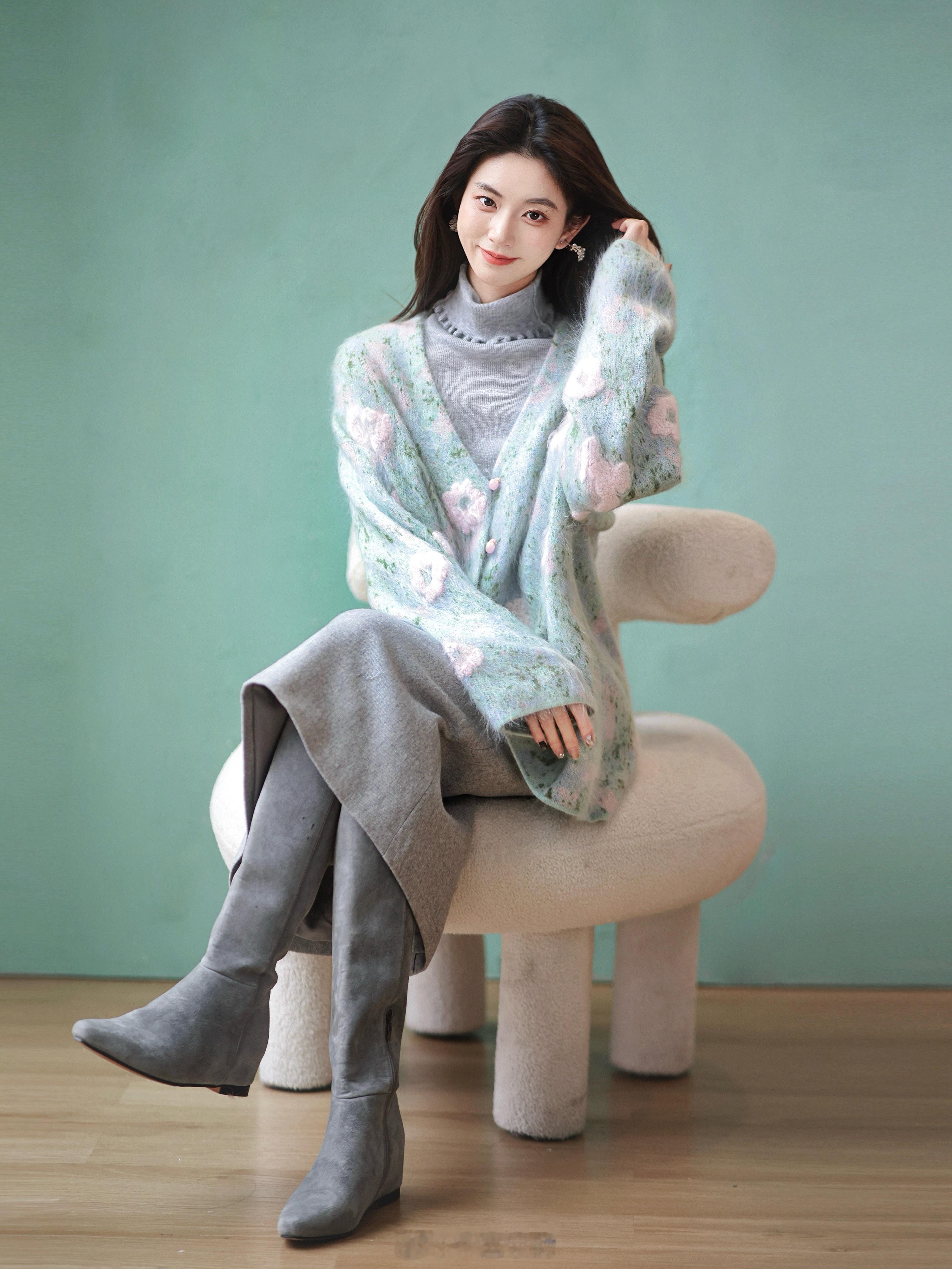 本粒一眼心动的拉毛毛衣!100山羊绒 软糯细腻 肤感赞到不用多讲这个立体绣花 真的很绝 温柔清爽又大家闺秀感