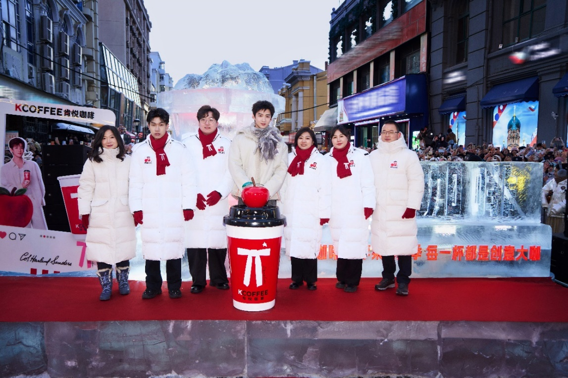 当晚,肯悦咖啡在这里举行“红苹果心愿季”冰雕点灯仪式。品牌代言人白敬亭到场助阵,与市民一同按下互动按钮,冰雕随之亮起,红苹果的光影在寒夜中铺展开来,为冰城增添了一份节日气息,也为即将到来的新春预热。