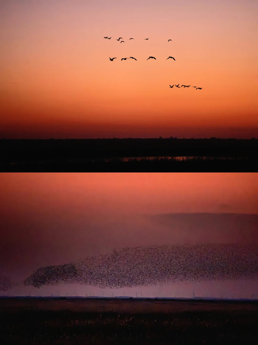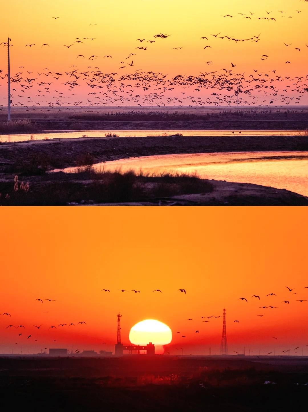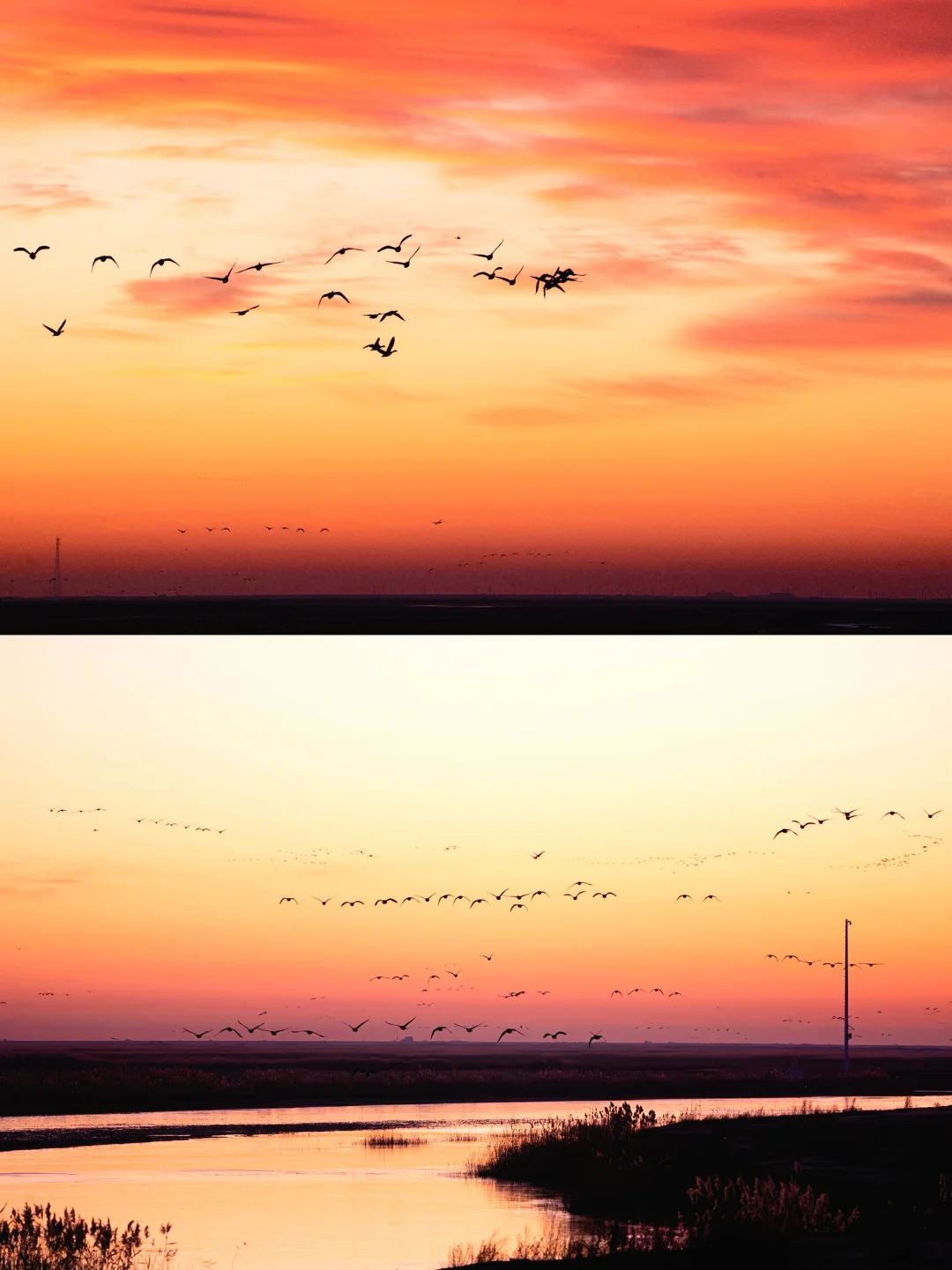 来了东营N次,这次只为追鸟。 当数以万计的候鸟在湿地上空翻飞成浪,夕阳为羽翼镀上金边,那份震撼难以言表。 这个秋天,如果你也想被自然治愈,不妨来东营,赴一场与鸟的约会。 ✅观鸟攻略 🎈核心观鸟点 东八路与滨海大道向东五公里,易遇“鸟浪”。 🕘最佳时间 即日起至12月,每日清晨7:30前或傍晚17:00后,鸟类最活跃。 🚗其他路线推荐 1️⃣ 北线:永红路出发,经多处湿地至黄河口旅游区,适合自驾观水鸟。 2️⃣ 东八路沿线:从支脉河北上,景观丰富,鸟类多样。 3️⃣黄河口旅游区内:设有5处观鸟点,设施完善,适合初次体验。 ✅雁阵观赏 若说鸟浪是盛宴,那雁阵便是每日定时的诗意。在东营,常能看到大雁列队掠过天际。 它们整齐划一地变换队形,在晨曦或暮色中剪影飞行,那种沉稳的节奏与生命力,比任何画面都更治愈。 🎈最佳观赏点 黄河农场中桥湿地观景平台、东营文旅天鹅观测点 ⏱️最佳时间 早上6:30-7:30