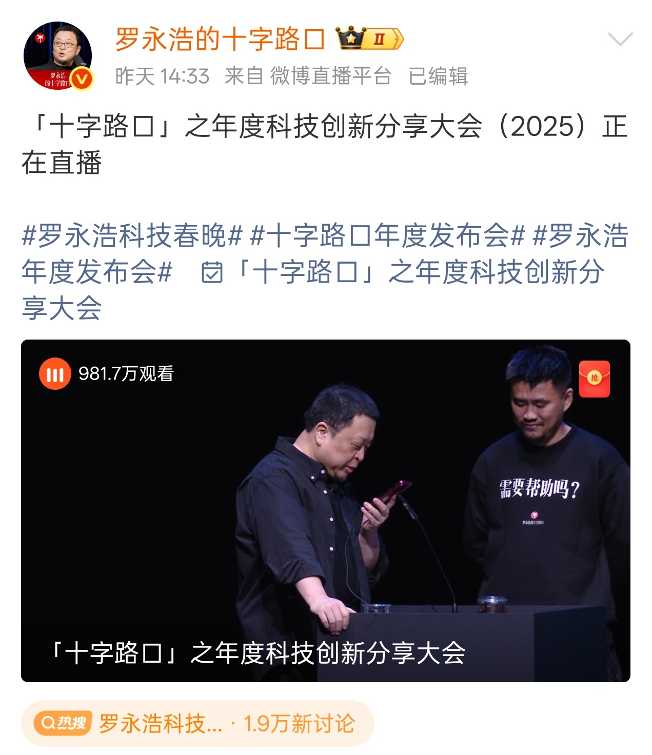 罗永浩科技春晚迟到40分钟,全程炮轰王自如