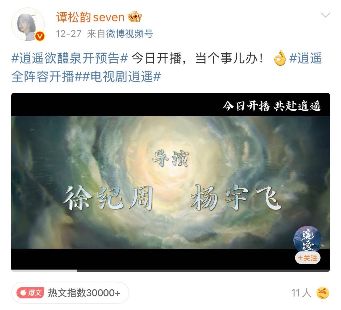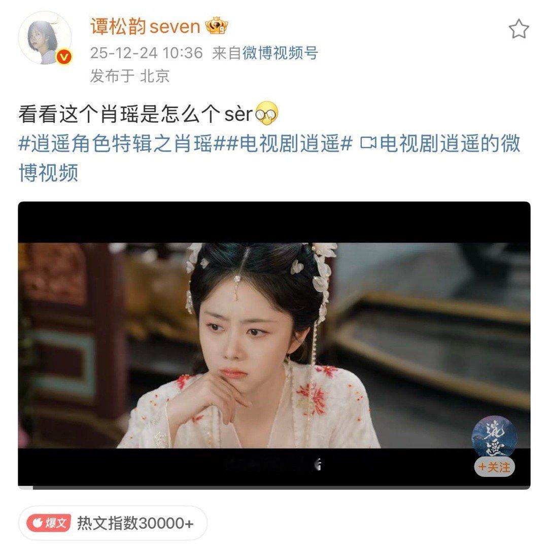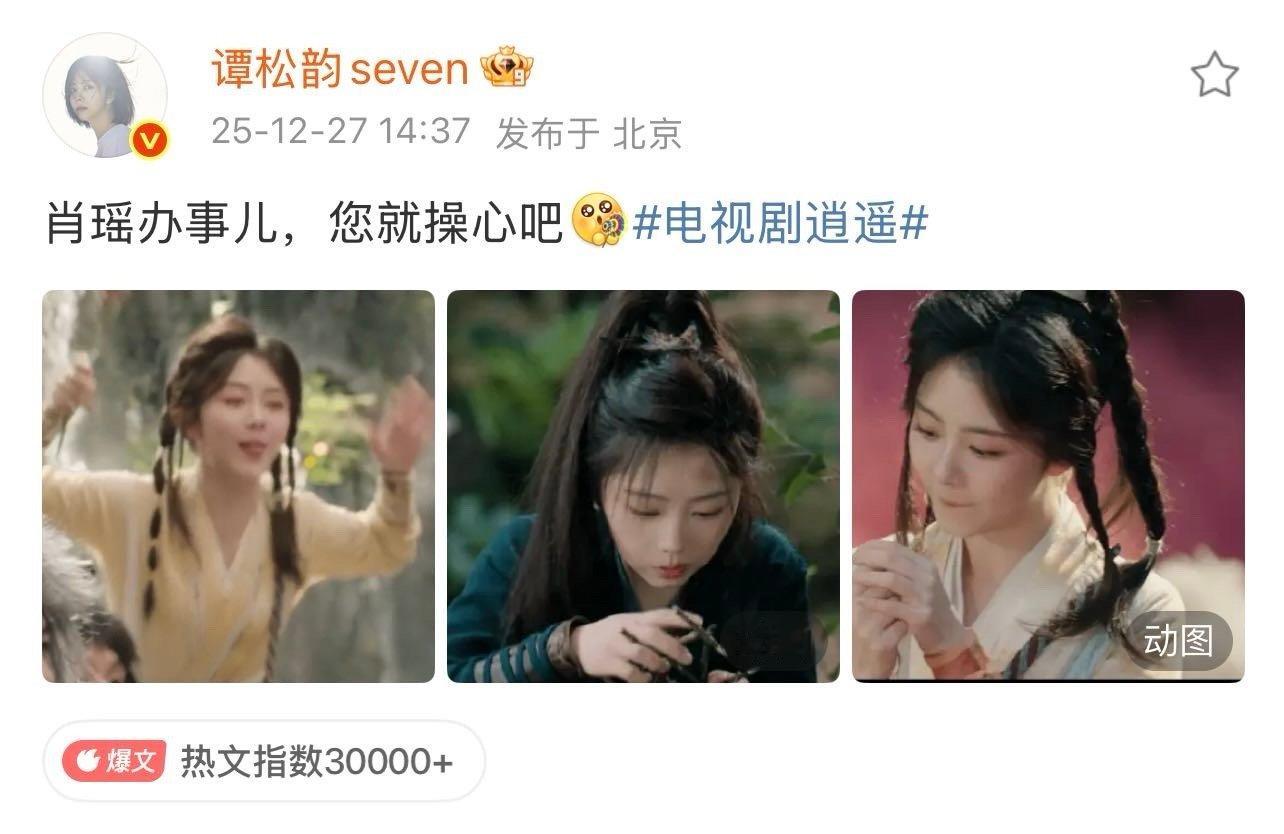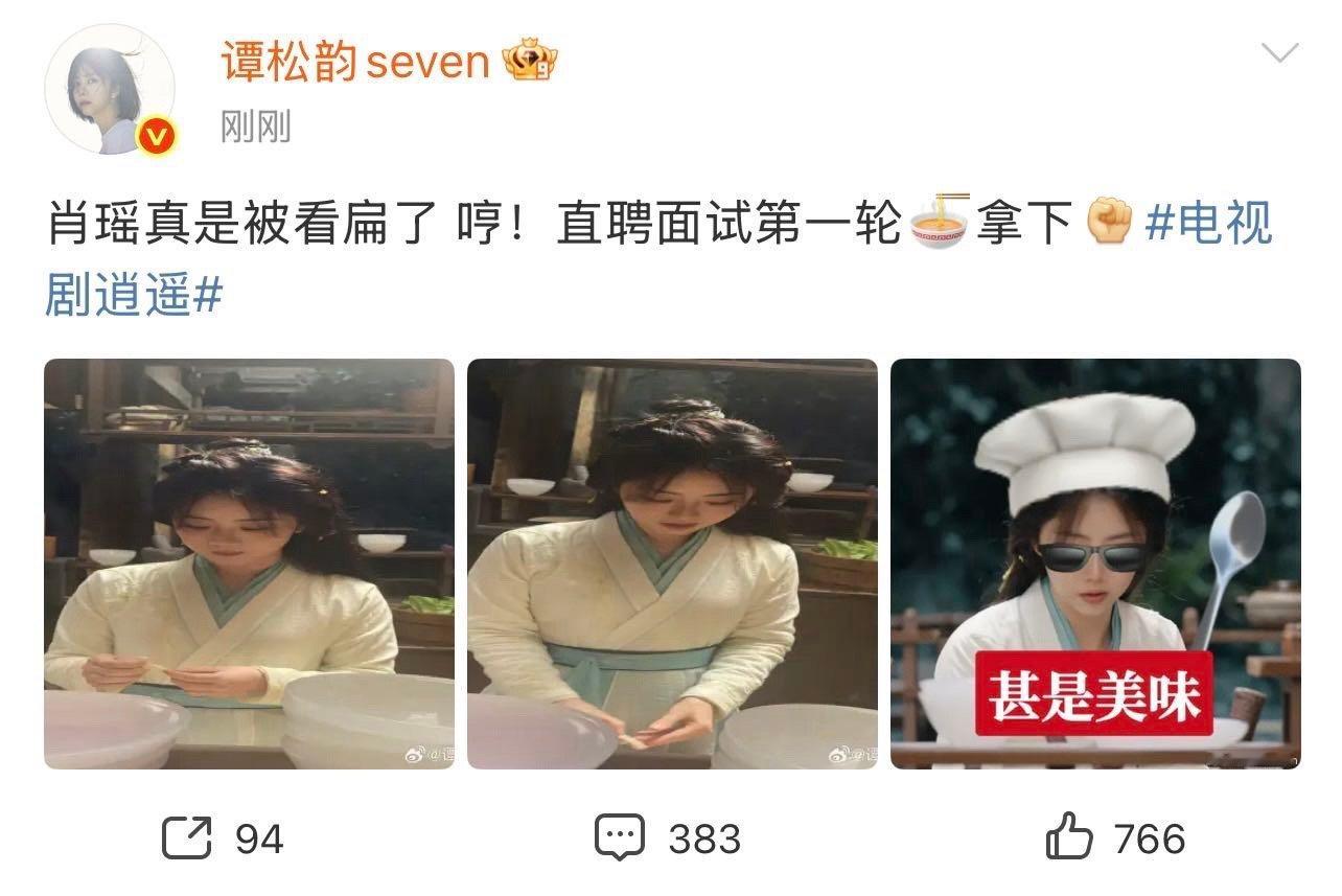 没人告诉我谭松韵网速这么快啊不讲不讲,谭松韵网速一直可以的,说松韵网速慢的都出去罚站(bushi不仅仅有侧拍视角看到感人画面偷偷流泪,还随时随地发散幽默感,追剧打卡也是爆梗金句不断,在她微博里肖瑶完全可爱、温暖、鲜活得更上一层了!我要这么缠着谭松韵一起追着逍遥,我三集你三集,你三集我三集、、、、、、