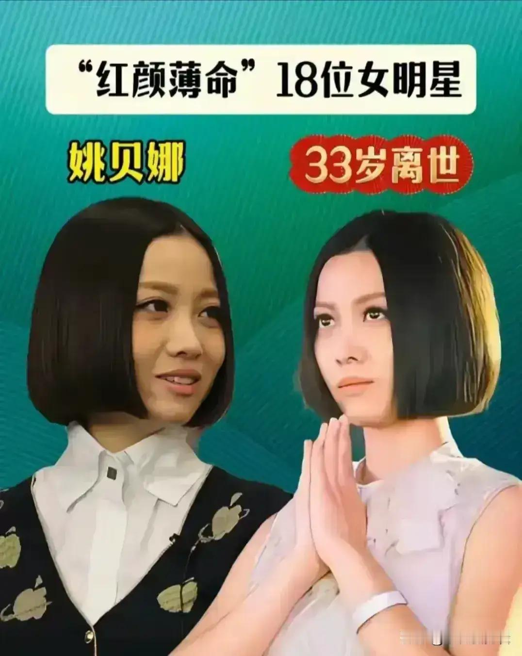 翁美玲长得美,却英年早逝。 梅艳芳长得美,却英年早逝。 李媛媛长得美,却英年早逝。 刘丹长得美,却英年早逝。 陈宝莲长得美,却英年早逝。 乐韵长得美,却英年早逝。 陈晓旭长得美,却英年早逝。 邓丽君长得美,却英年早逝。 姚贝娜长得美,却英年早逝。 这些都是娱乐圈中非常优秀的女明星们,她们有的是著名的歌手,有的是著名的演员,不但有才华,而且长相也是非常惊艳,可是她们都在最美好的年华离开了人世,不免让粉丝和她们的家人们感到非常的悲痛,姚贝娜之前是华语乐坛天后级别的人物,她的嗓音仿佛被天使吻过一般,非常的动听,可是却不幸患癌,你是
