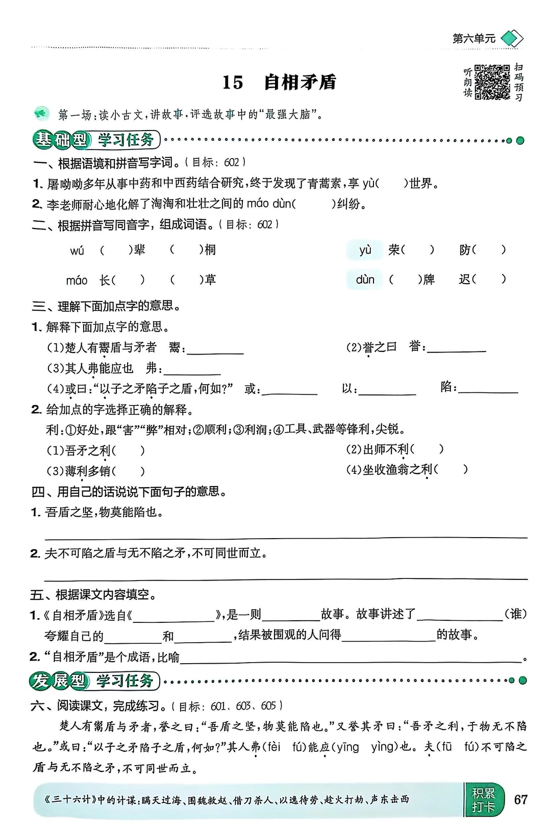 1.认识生字“吾、弗”,读准多音字“夫”,会写“矛、盾”等字。