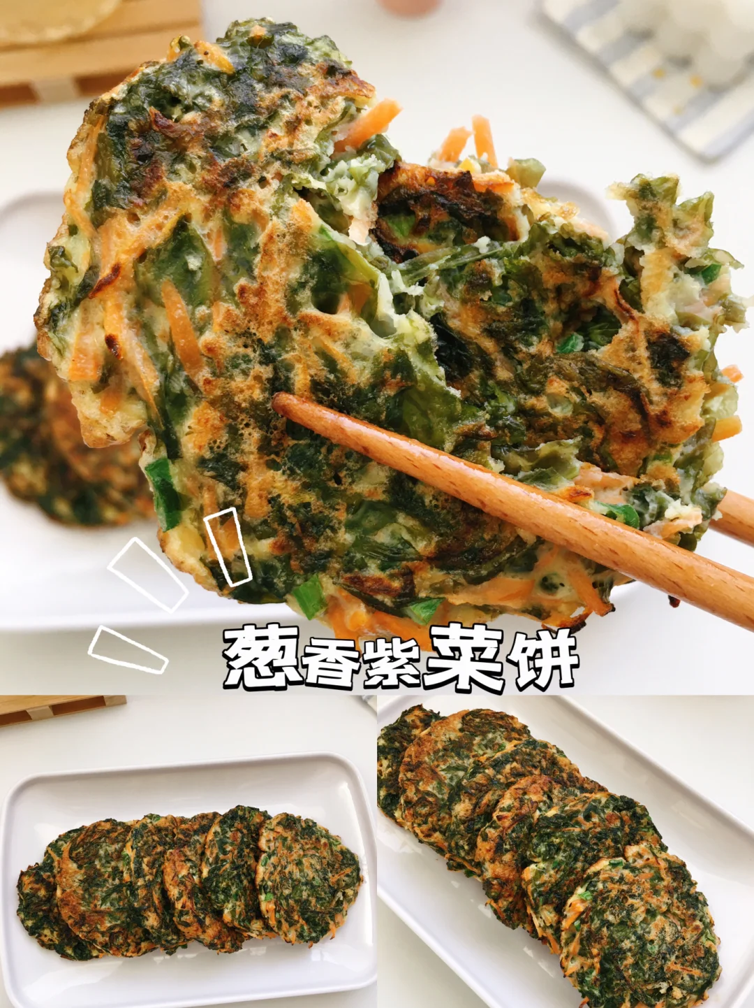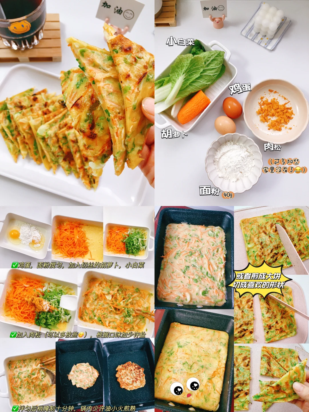 懒人必备早餐技能,不揉面,食材简单,简直不要太快好不好! 今日分享~ ✅西葫芦虾仁饼 ✅葱香紫菜饼 ✅甜糯玉米饼 ✅小白菜肉松鸡蛋饼 [打卡R]做法见图片[打卡R] 小提示: ▶️紫菜可以先泡软,滤干水分后切碎 ▶️小火煎熟 ✨✨分享我的低卡日记