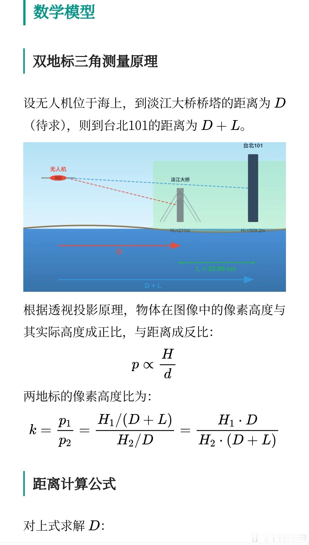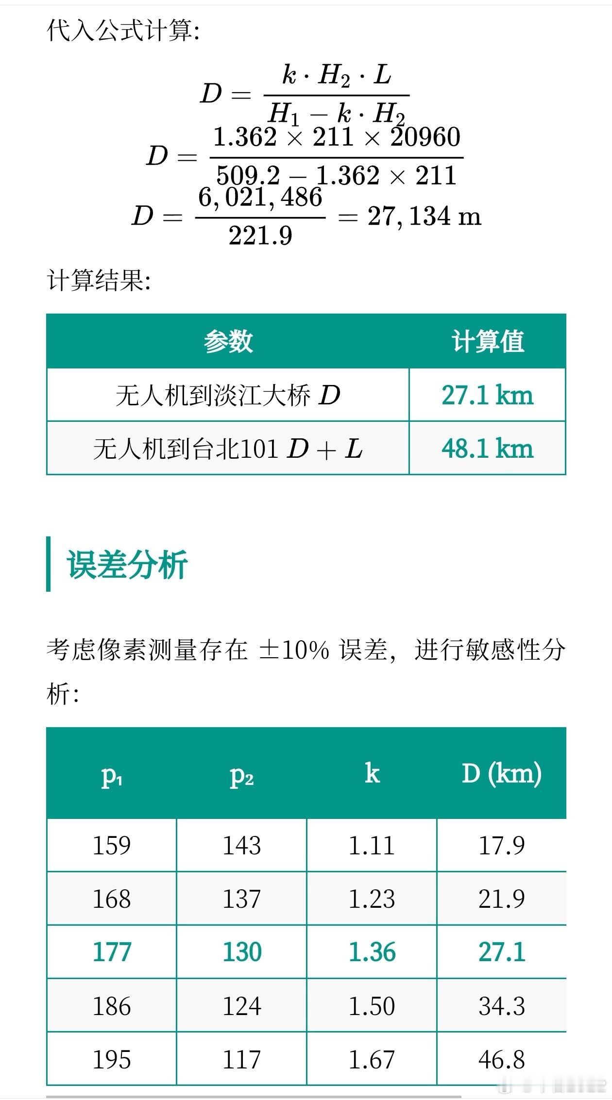 网友建立模型计算了距离这次无人机拍摄101大楼,的确震撼人心,还有今天拍的机堡。经过网友计算,无人机到101大约48km,到大桥约27km,到水口24km。新闻联播出现台北101大楼画面新闻联播出现台北101大楼画面 烽火问鼎计划