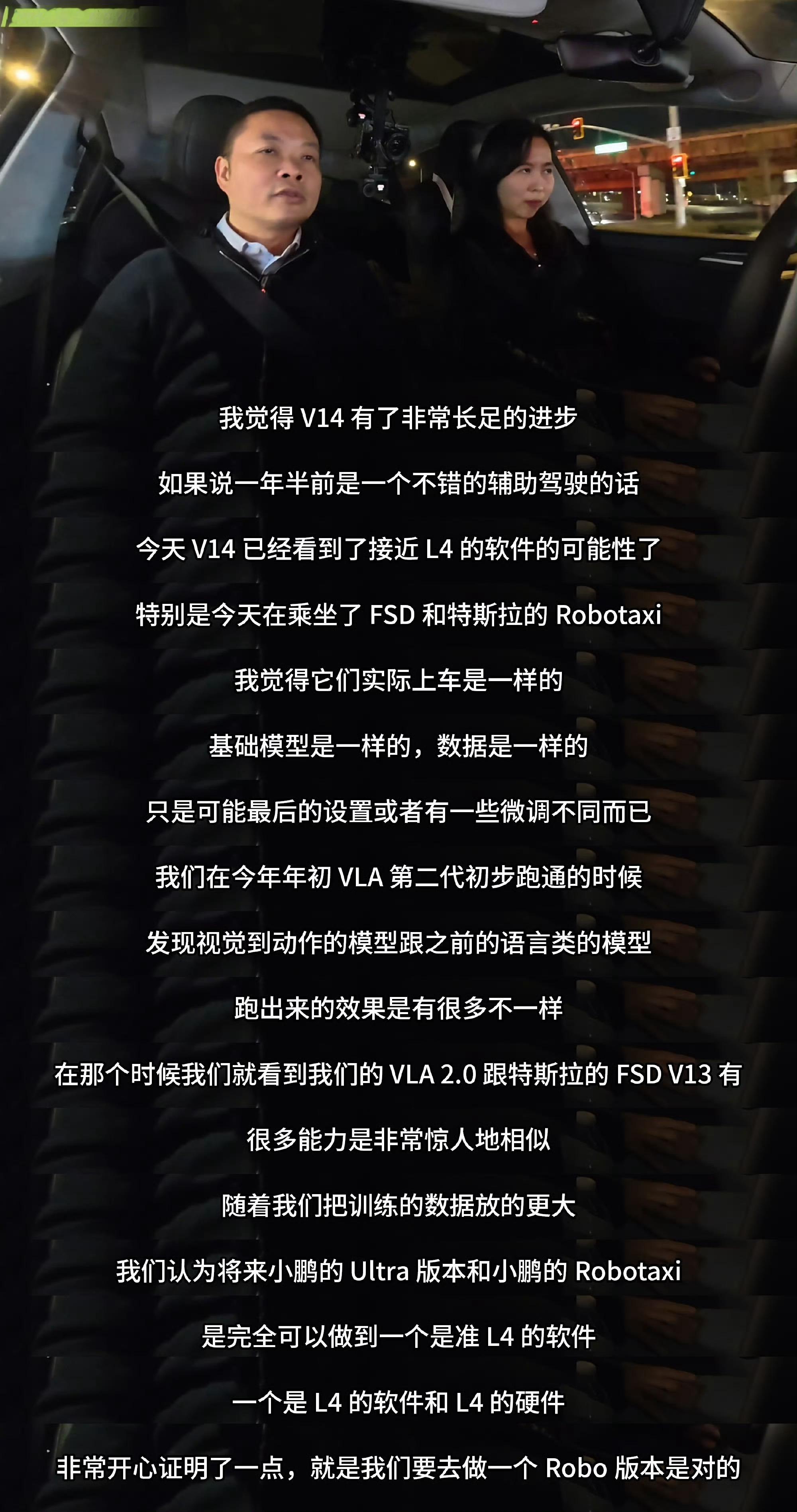 何小鹏最近又跑了一趟美国,试了特斯拉最新的FSD V14。能看出这套系统确实在不断进化,开得越来越顺了。但有趣的是,他回国马上测试了小鹏自家的第二代VLA。开完之后他有个很直接的感受,在中国的路上,小鹏这套反而更让他觉得踏实。国内的路况复杂得多,到处是加塞、混行和突发状况,而第二代VLA在转弯、控车、和周围车辆博弈时,显得挺从容,动作也流畅。他反复提到那种“安心感”。说白了,就是系统能让你在复杂路况下逐渐放松,而不是全程紧绷随时准备接管。这种状态或许才是智驾真正有用的时刻。据说小鹏正在憋个大的,目标是在2026年实现技术跨越。说实话,参数和演示未必能说明什么,但敢这样直接对标、并且深耕本土复杂路况的做法,至少让人愿意保持关注。毕竟系统好不好用,最后还得看它在真实路上能不能让你放心松开方向盘。何小鹏9大场景美国对比特斯拉