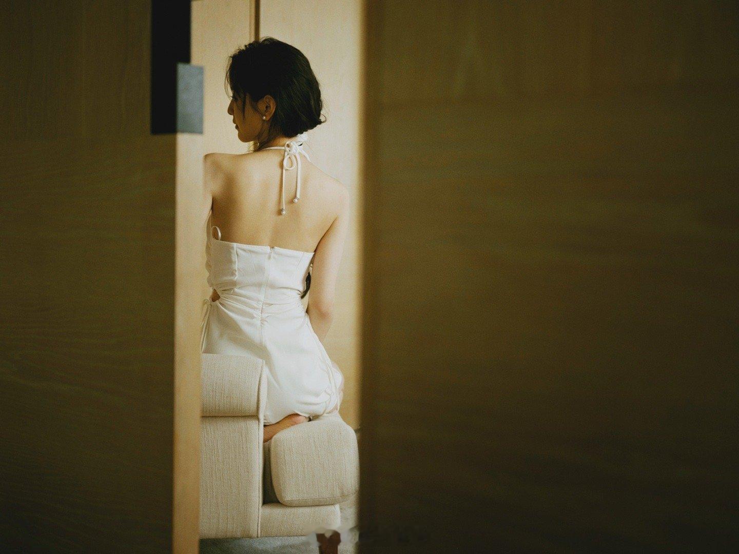 蒋梦婕纯白蕾丝优雅长裙写真
