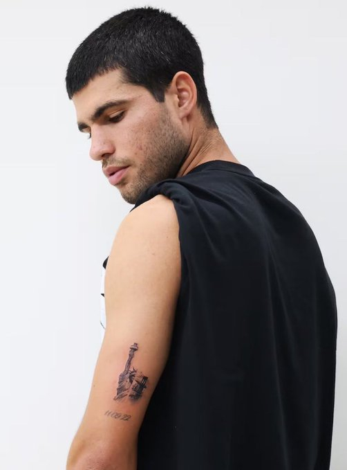 阿尔卡拉斯的新纹身图案特写~下面的一串数字是之前2022年第一次美网夺冠时纹的捧