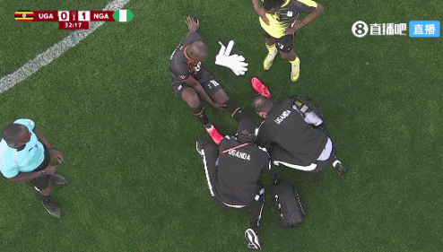 第21分钟,乌干达门将昂延戈好像出现受伤情况。↓