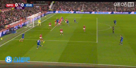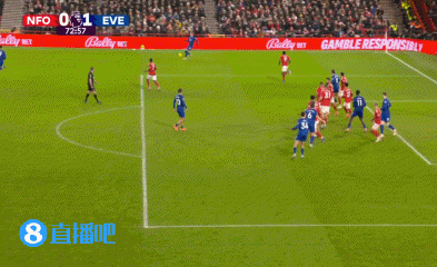 上半场伤停补时1分钟,半场结束,诺丁汉森林暂0-1埃弗顿。