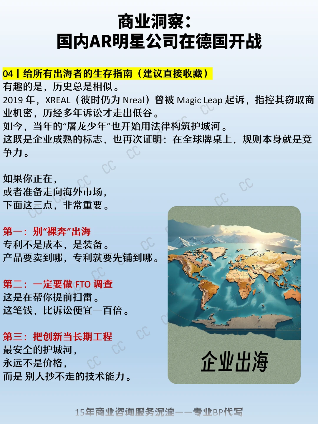 中国科技公司出海的时代, 已经告别了“野蛮生长”。 下半场拼的不是胆子, 而是: 技术、规则、和对世界的敬畏。 XR 专利第一案, 已经把警钟敲得足够响了。