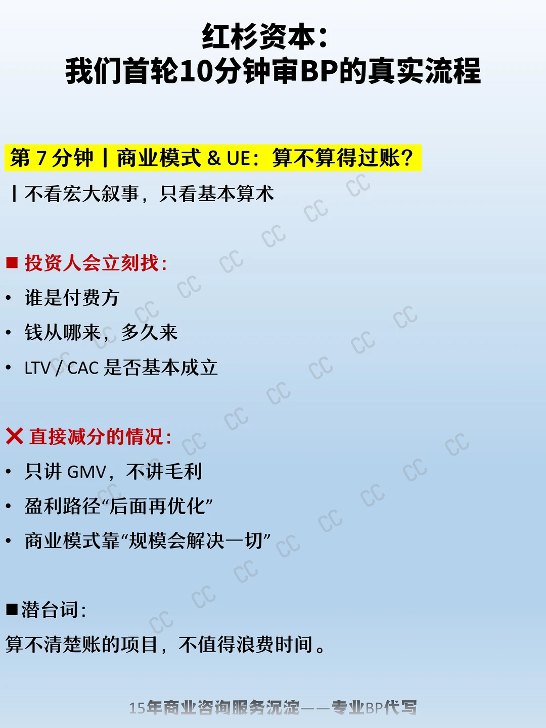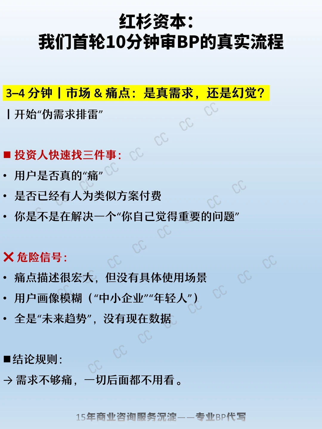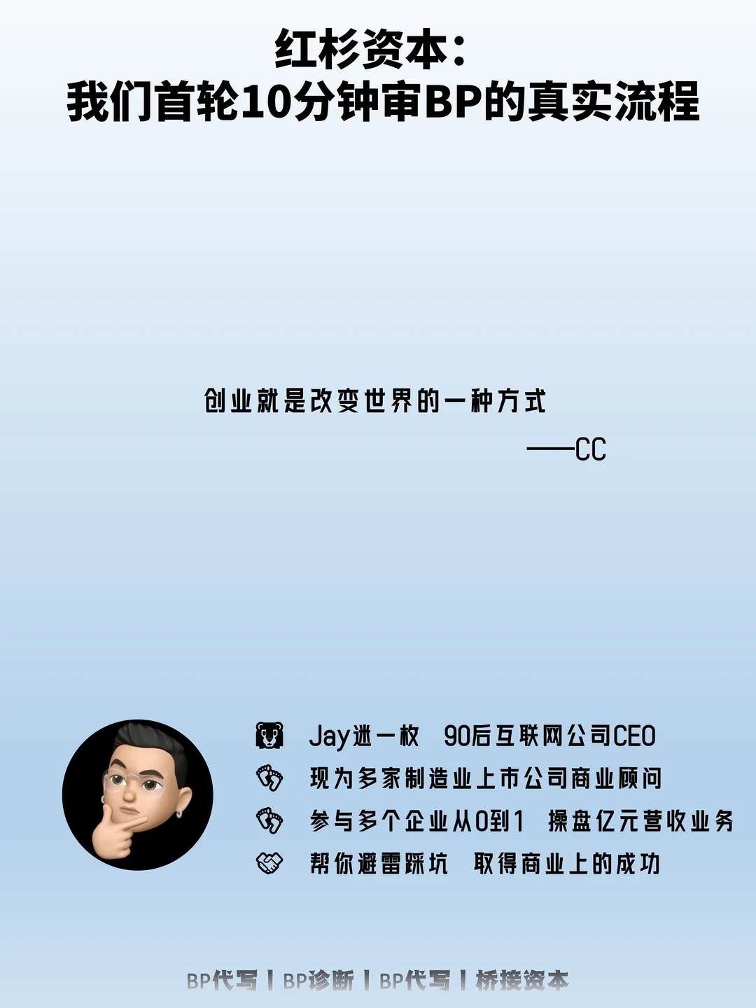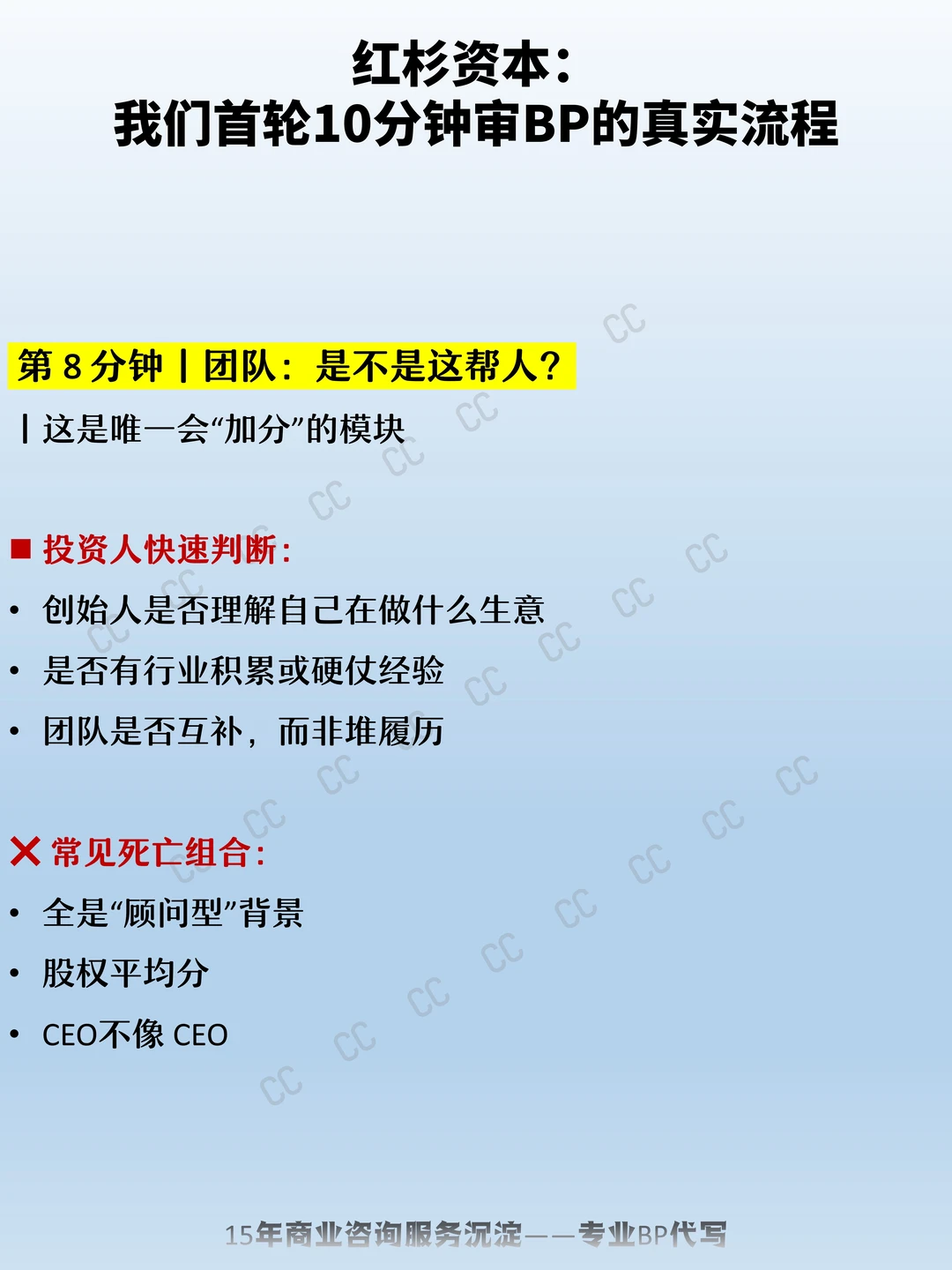 绝大多数项目,连“被认真看完”的资格都没有。第一轮,不是找理由投你,而是在极快速度里,找足够的理由不投你 如果你的 BP 扛不住这 10 分钟,那它也扛不住任何一次真正的投决