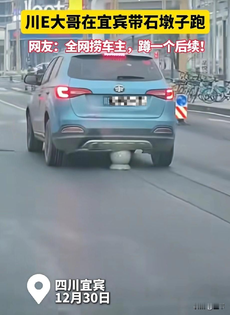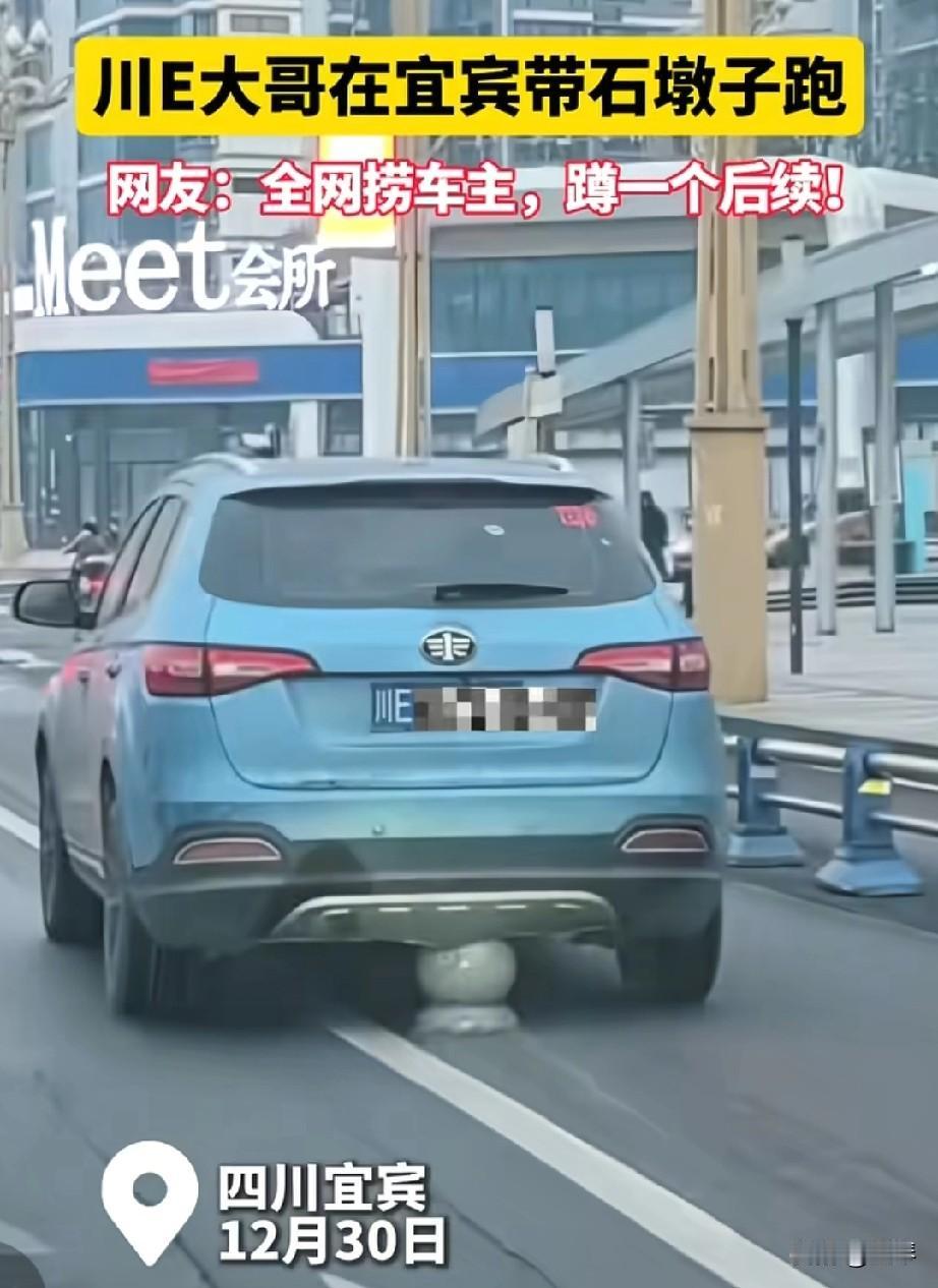 川E大哥来宜宾的“伴手礼”,真的是别具一格啊![呲牙] 要说来宜宾旅游谁最“硬核”,那必须是这位川E车主大哥!别人来宜宾,要么拎着燃面、揣着芽菜当伴手礼,这位大哥倒好,直接给爱车挂了个石墩子当“吊坠”,在宜宾的马路上一路拉风行驶。 从网友拍到的画面里能看到,蓝色SUV的车尾下方卡着个石墩子,车轮滚着路,石墩子也跟着在地面摩擦,不知道的还以为是车主特意加装的“个性装饰”。 网友们直接笑喷,调侃大哥是“来宜宾绝不走空”,连石墩子都要顺一个当纪念。不过玩笑归玩笑,这种情况其实特别危险,石墩子卡底盘不仅会损坏车辆,万一途中掉落,还可能给后方车辆带来安全隐患,还是得提醒车主赶紧处理呀!