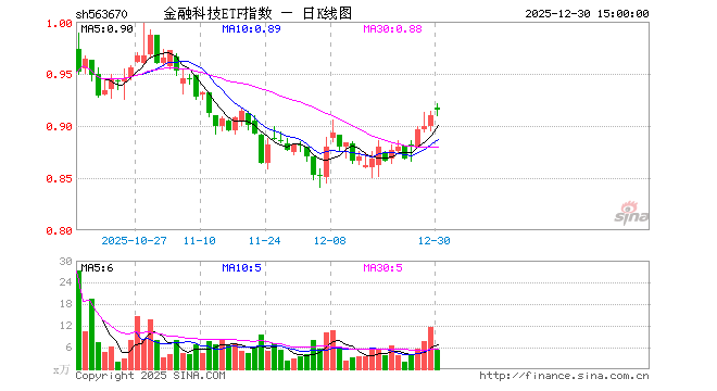 12月30日,金融科技ETF指数(563670)涨0.55%,成交额482.01万元。当日份额减少200.00万份,最新份额为4.24亿份,近20个交易日份额减少3700.00万份。最新资产净值计算值为3.86亿元。