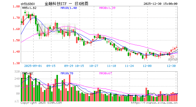 12月30日,金融科技ETF(516860)涨0.28%,成交额1.12亿元。当日份额减少1400.00万份,最新份额为15.00亿份,近20个交易日份额增加700.00万份。最新资产净值计算值为21.54亿元。