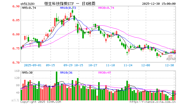 12月30日,恒生科技指数ETF(513180)涨1.09%,成交额37.27亿元。当日份额增加800.00万份,最新份额为666.08亿份,近20个交易日份额增加31.90亿份。最新资产净值计算值为495.69亿元。