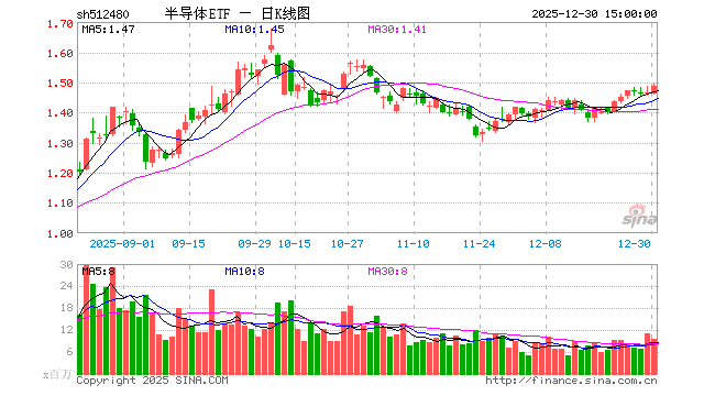 12月30日,半导体ETF(512480)涨1.36%,成交额14.22亿元。当日份额减少1.32亿份,最新份额为137.31亿份,近20个交易日份额减少13.40亿份。最新资产净值计算值为203.81亿元。