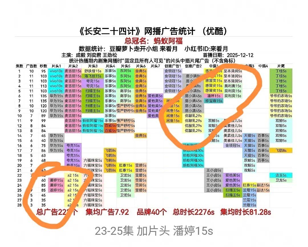 又在虚假吹b了,吹了一天的《长安二十四计》完结后加广告,其实是旧广告曝光度不够补曝光,和长安的荔枝完全一样,以前瓜主发过,很多扑街剧的广告曝光度不够,旧广告会在播完之后再投几集,潘婷曾经在之前投放过
