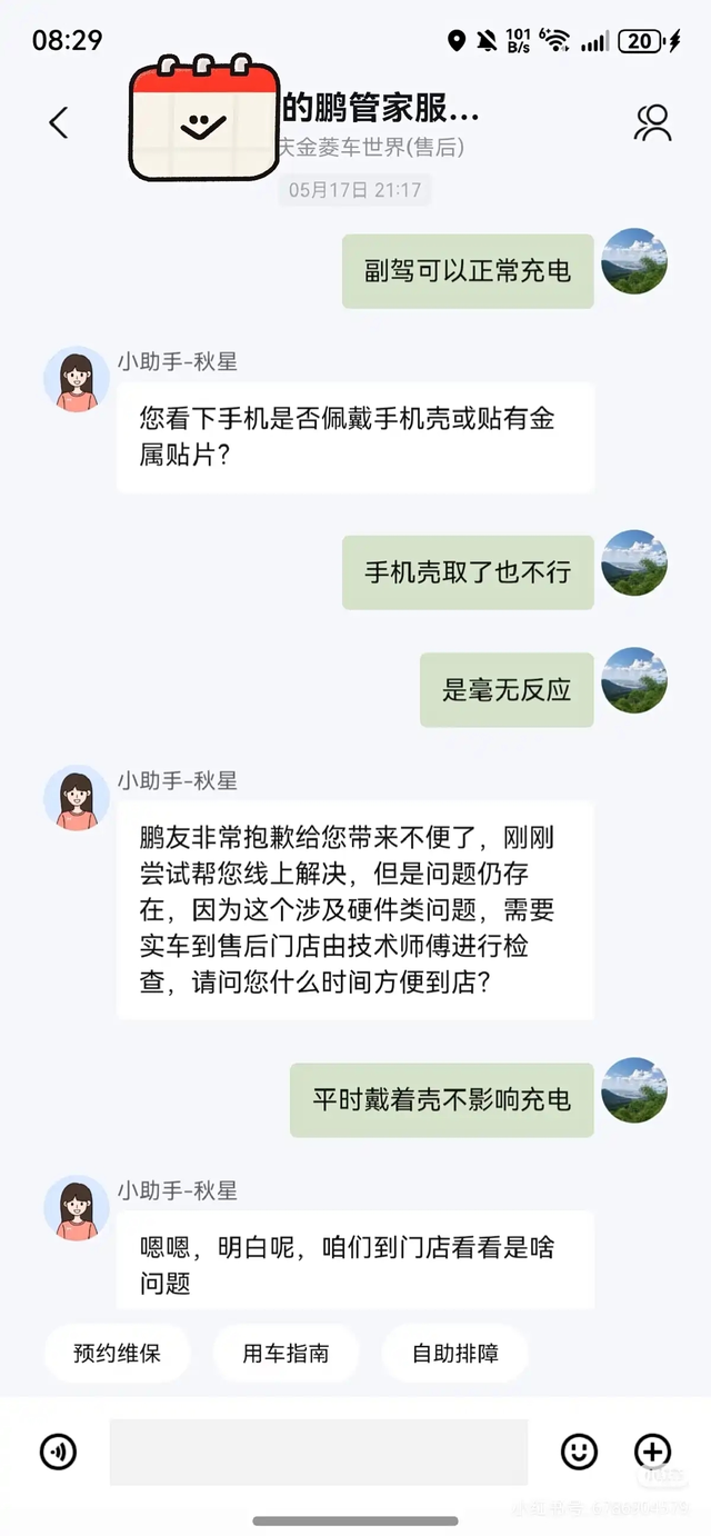 开了三万三千公里小鹏P7+吐槽一下缺点 1.无线充不好用,我使用的手机是一加12,每次充电,不管是在行驶过程中还是停止过程中,在没有碰手机的状态下喜欢断充,时不时就退出充电,然后自己又充上电,长时间下来,根本就没充上多少电。与售后反应过此问题,当时短时间内测试无异常,但是实际在使用过程中还是会出现,最后放弃使用此功能,买了根充电线进行充电。 2.底盘调教,说实话这个车底盘调教很软,在城市路段我觉得这种软其实还不错,但是过乡村那种颠簸路段,速度稍微快一点可能会磕底盘,然后开的也很难受,底盘会不稳定,开普通或者运动模式可能强一点。后面5月份升级了新款P7+,升级了5C及底盘CDC调教,不知道优化如何。 3.这个车属于中大型轿车,对于新手而言,车还是比较长和宽的,不管是在驾驶过程中还是停车过程中,都需要注意车尾的通过性,对新手不太友好,我老婆是去年刚拿到的驾照,这辆车刚开起来不太适应,后面多开了一段时间就好一点了。 4.开了11个月,总共行驶了33000km,从一月份提车截止到现在,只要是下雨天开雨刮器就会滋滋滋的响,在车友群里反馈,好多车友也有这个问题,小鹏原装雨刮是真的很不耐用,已经买好了新雨刮器,下次下雨前就可以更换了。
