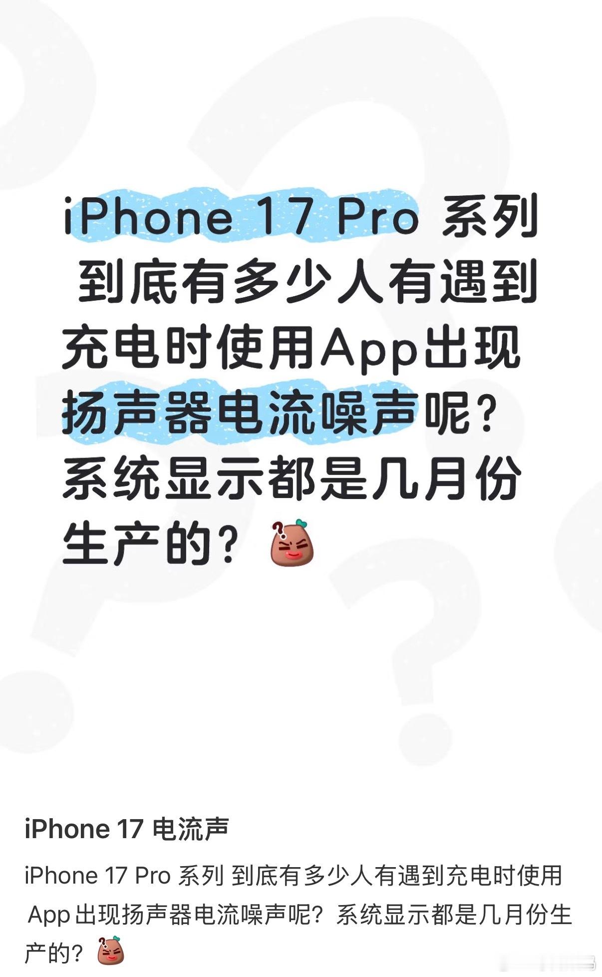 iPhone17Pro充电嘶嘶声有用户反应iPhone17 Pro充电有嘶嘶电流声,我还没遇到这种情况,你们有遇到吗