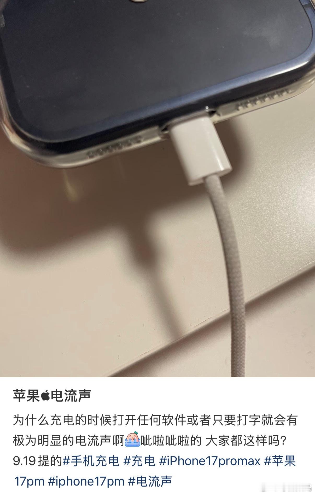 iPhone17Pro充电嘶嘶声有用户反应iPhone17 Pro充电有嘶嘶电流