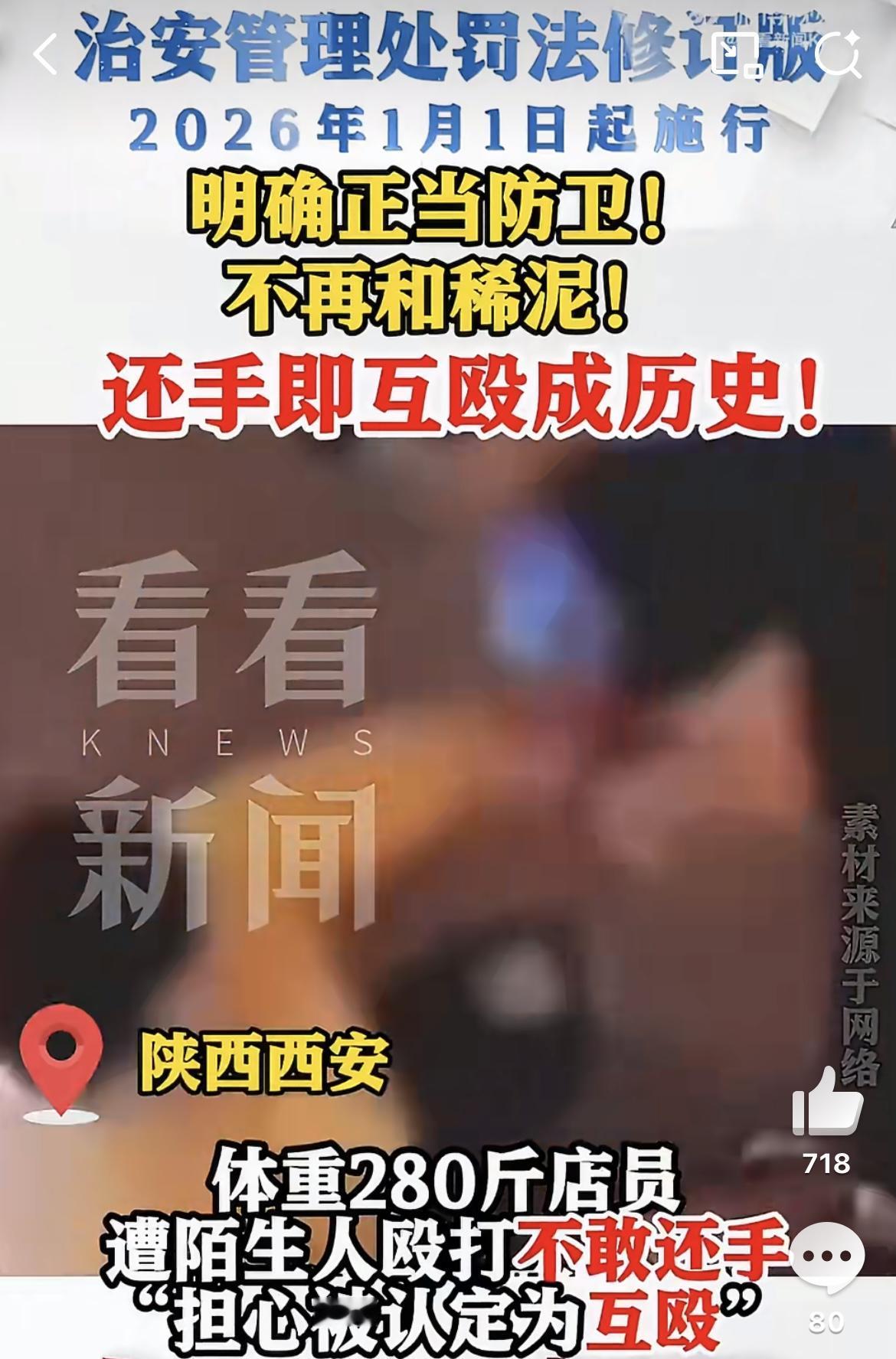 “被打还手即互殴”将成为历史:《治安管理处罚法》的“正当防卫”来啦! 你是否遇到过这种情况:被人无故推搡或殴打,本能地还手自卫,结果警方到场后却判定“互殴”,双方都要受罚?这种“各打五十大板”的处理方式,曾引发不少争议。如今,这一局面即将迎来重大改变! 2026年1月1日起施行的新《治安管理处罚法》将“正当防卫”条款纳入治安管理领域,明确因正当防卫造成损害的,不予治安管理处罚。“被打还手即互殴”将成为历史。被打还手即互殴将成为历史被打还手即互殴成为历史北京刑事律师律师来帮忙 新《治安管理处罚法》第十九条明确规定:为了免受正在进行的不法侵害而采取的制止行为,造成损害的,不属于违反治安管理行为,不受处罚;制止行为明显超过必要限度,造成较大损害的,依法给予处罚,但是应当减轻处罚;情节较轻的,不予处罚。 新法中规定的“正当防卫”条款,在《刑法》中早有规定。那么,在实践认定中,也会参考刑法中正当防卫的认定条件。要构成正当防卫,要求符合以下五个条件:防卫起因、防卫时间、防卫对象、防卫限度及防卫意识。 所谓防卫起因,指的是行为人面临不法侵害。所谓的不法侵害既包括犯罪行为,也包括一般违法行为。具体包括违反治安管理的行为,如推搡、殴打、拦截等,也包括犯罪行为,如故意伤害等。 防卫时间,要求必须在不法侵害发生的过程中进行防卫,也就是不法侵害已经开始尚未结束的持续状态。要注意的是,若是不法侵害人暂时中断侵害行为但仍有继续侵害的可能性,则仍可认定为正在进行。 防卫对象仅限于不法侵害者本人,也就是只能对实施不法侵害者进行防卫,不能对实施不法侵害者的亲人、朋友等进行正当防卫的道理。不过,对于多人共同实施侵害的,可针对直接实施者或在现场共同实施者防卫。 刑法中对正当防卫的限度要求是不能明显超过必要限度造成重大损害。司法实践指导案例中,对于防卫限度的确定,一般以必要限度为标准。也就是说,应当以防卫行为是否能制止住正在进行的不法侵害为标准,同时考虑所防卫的利益性质和可能遭受损害的程度,要同不法侵害人造成损害的性质、程度大体相适应。 最后,防卫人必须出于免受不法侵害的意图,而非出于挑衅、互殴或事后报复等目的。若存在防卫挑拨,如故意挑逗对方侵害自己再反击或互殴情形,则不构成正当防卫。 应当说,这一条款的确立有重要意义,让“被打还手即互殴”成为历史!这一规定有助于鼓励公民在合法权益受到侵害时采取必要防卫,也为执法人员提供了明确的判断标准,减少“和稀泥”式处理,提升执法公信力,还向社会传递“邪不压正”的明确信号!