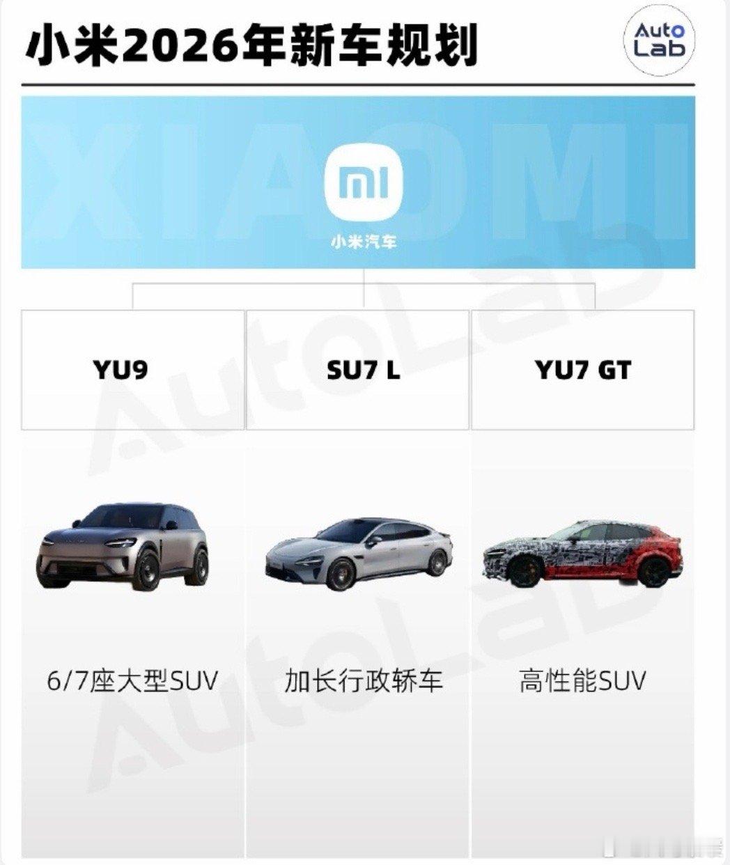 小米汽车明年预计推出4款新车分别为SU7改款、SU7行政版增程七座SUV、增程五座SUV 小米明年或推4款新车