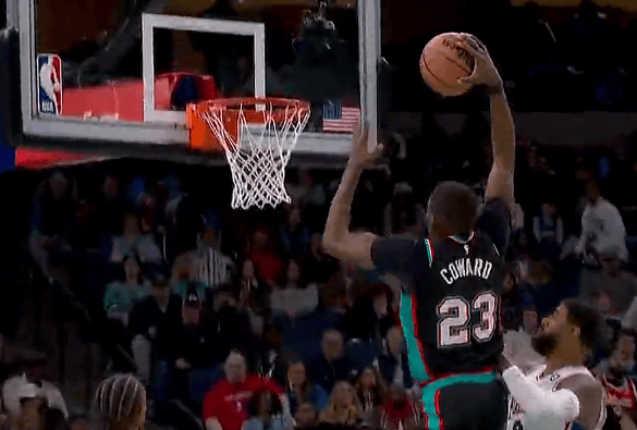 考沃德反击单手劈扣得手,砍下28分刷新个人生涯得分新高
