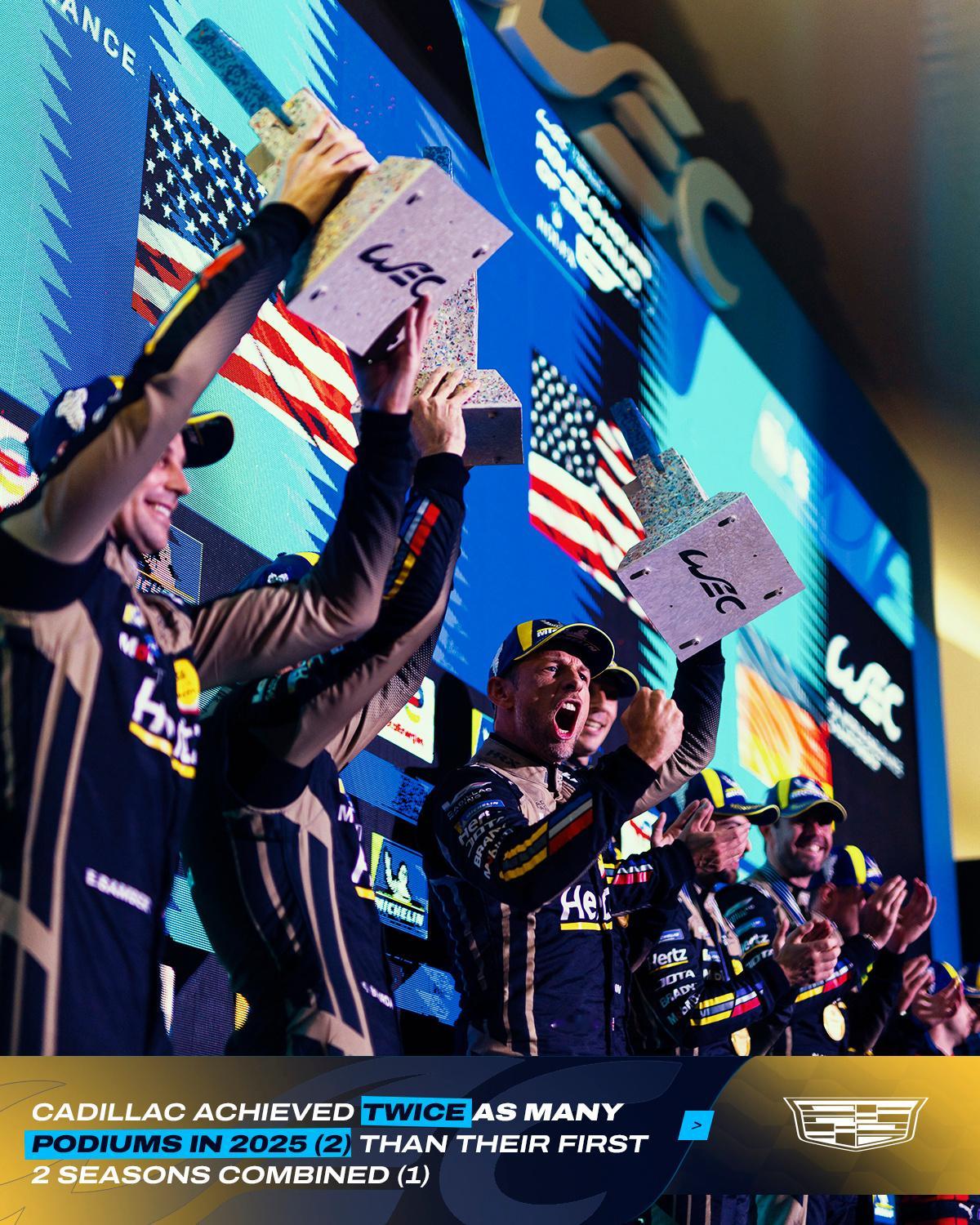 2025赛季WEC Hypercar组小结:凯迪拉克篇~凯迪拉克与JOTA的组合在这个赛季确实给了大家不少惊喜,原本对于磨合度的担忧并没有太多体现。V-Series.R在单圈冲刺的表现上相当出众,包括勒芒在内的三站比赛赢下杆位(而且全部是林恩赢的)是其成为了Hypercar组中的杆位王;而在相对友好BoP加持下,赛车的长距离表现也有所改善,这也使得凯迪拉克在今年的圣保罗一骑绝尘,初次尝到了分站冠军的滋味。当然,V-Series.R今年的给人眼前一亮的感觉其实离不开凯迪拉克对赛车的持续开发以及JOTA那靠谱的运营能力,不过很显然他们想冲击重要的锦标依然需要更多的投入与努力。凯迪拉克也很清楚这点,所以他们为新赛季再次升级了V-Series.R;至于车手阵容部分也作出了优化,韩世龙的加入无疑让两个车组的水平变得更加平均。展望2026赛季,凯迪拉克应该依然会是争冠组成员,但要突围的难度恐怕要比今年来得大,毕竟丰田、Alpine和宝马三家的赛车也都升级了,彼此间的竞争可以预期将会更加激烈……📈 FIA WECWEC世界耐力锦标赛凯迪拉克赛车