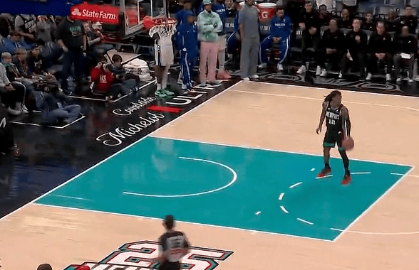 莫兰特抢断反击到前场,故意停球看向76人球员随后上篮