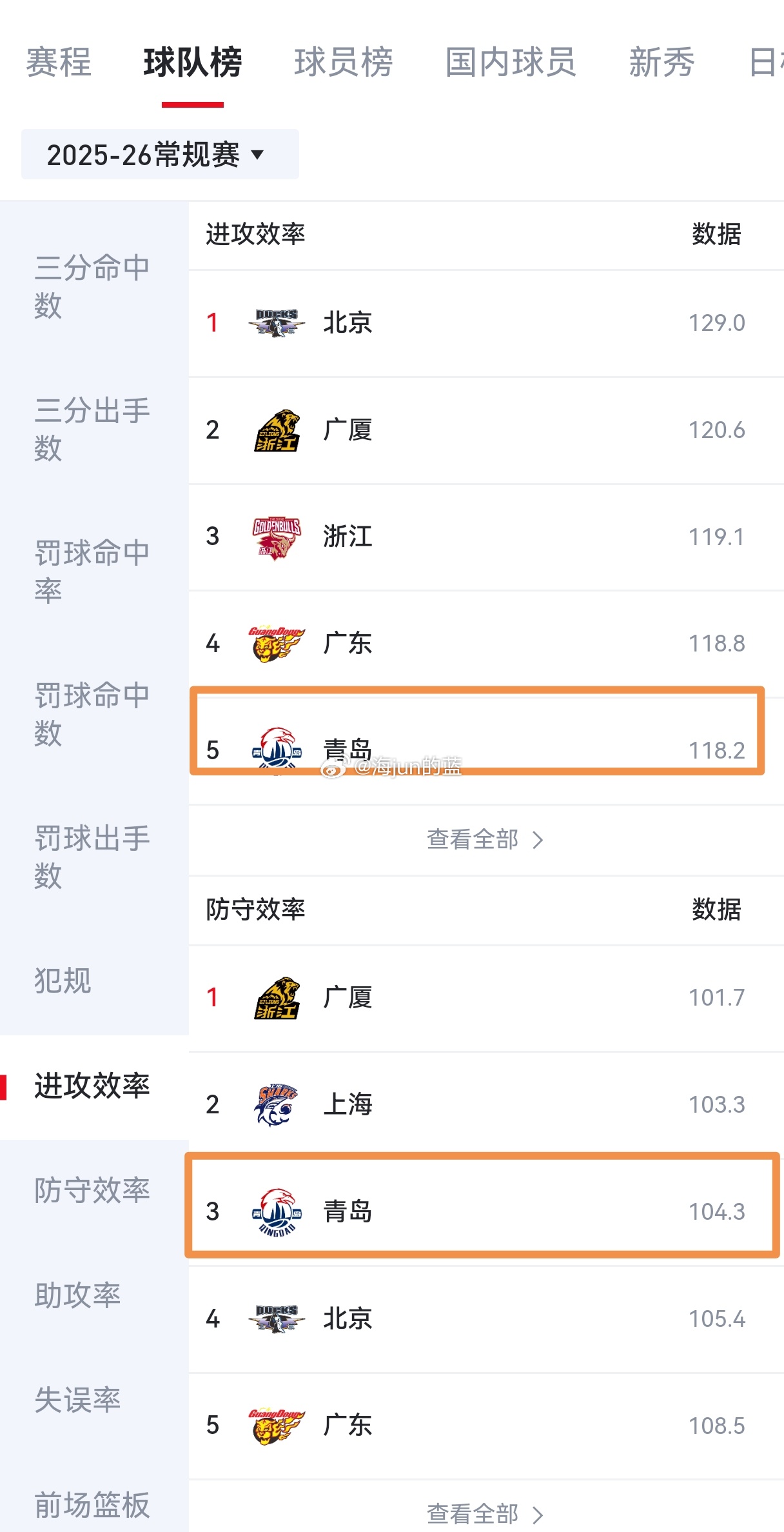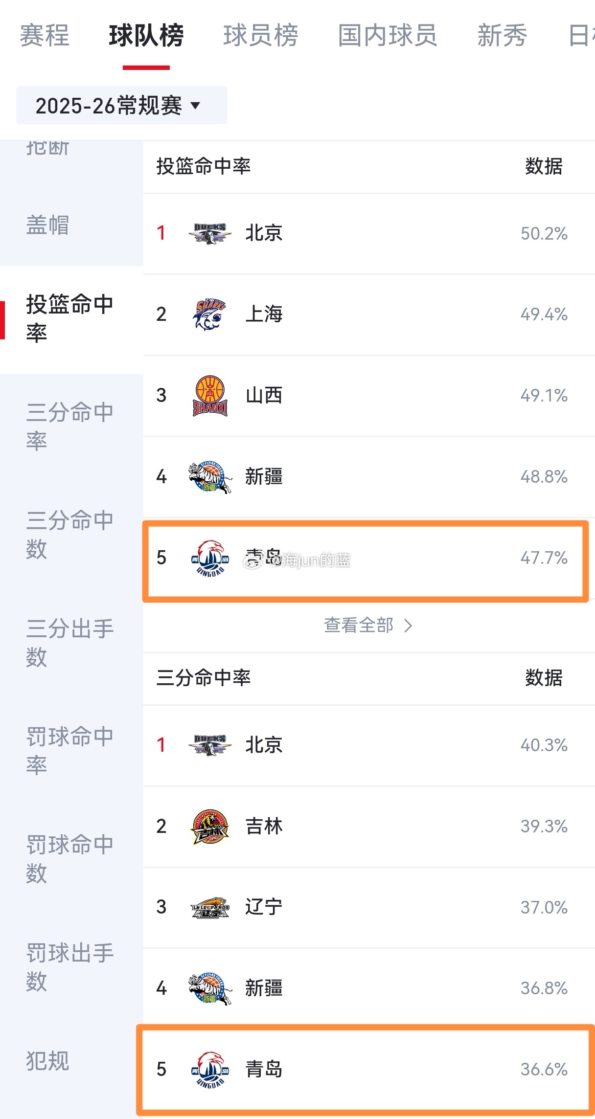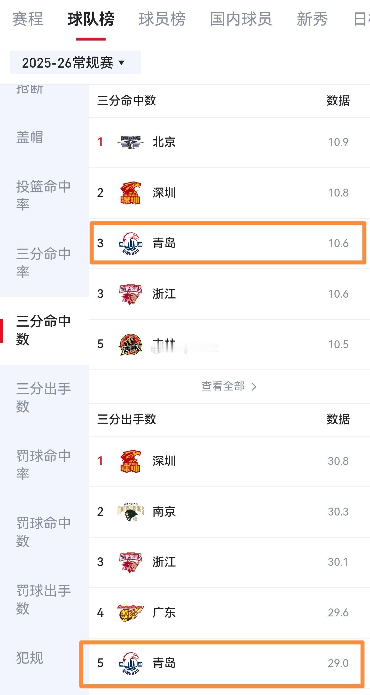 联赛已经打了8轮,打开排名,最让大家意外的球队是哪支?我想大多数都会说青岛吧?青岛能力压大投入的上海、山西等球队排在第四,是真的让所有人都意外。本赛季青岛少了杨瀚森,大家都以为球队在成绩方面会很受影响,确实,没了瀚森在内线的震慑力,青岛的场均篮板在联盟并不算好只排在第13名,进攻端的篮下占比更是只有25.3%排在联盟倒数第一,然而这并不意味着球队就此实力打减,因为指导正用自己最擅长的战术理念改造失去瀚森的青岛队。瀚森的优势在内线,但缺点是只能在内线,所以没有了他,青岛正好可以提速,现在队中的内线纪卓、米奇、汤普森的移动速度都不慢,而且都能投三分,所以提速同时加大三分出手是球队的目前的两个法宝。在整体投篮命中率、三分命中率、三分出手数、三分命中数这几项排名中,青岛都是名列前茅,是不是有点魔球的味道了?同时青岛队百回合失分只有104.1分,排在联盟第三,说明青岛在防守端的压迫性足够好,这一攻一防的数据排名很好地说明了球队的进步。当然,我们也承认青岛今年的开局赛程安排相对没那么困难,目前联赛排名前5的球队,青岛只遇到了宏远,广厦、北京、上海这样的强队还没打,但在乌鲁木齐赢下新疆打破17年客场不胜对手的记录,同时主场连胜山西和山东,这些比赛含金量也很高,同时给球队自信心带来了巨大提升。我想现在联盟没有任何一支球队会小瞧现在的青岛队。CBA青岛男篮