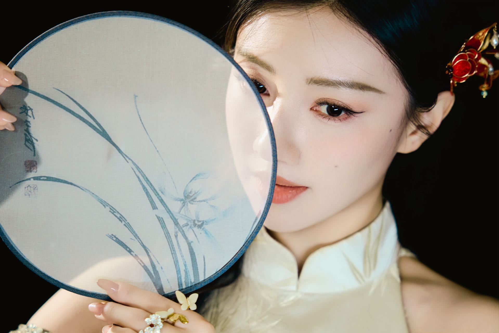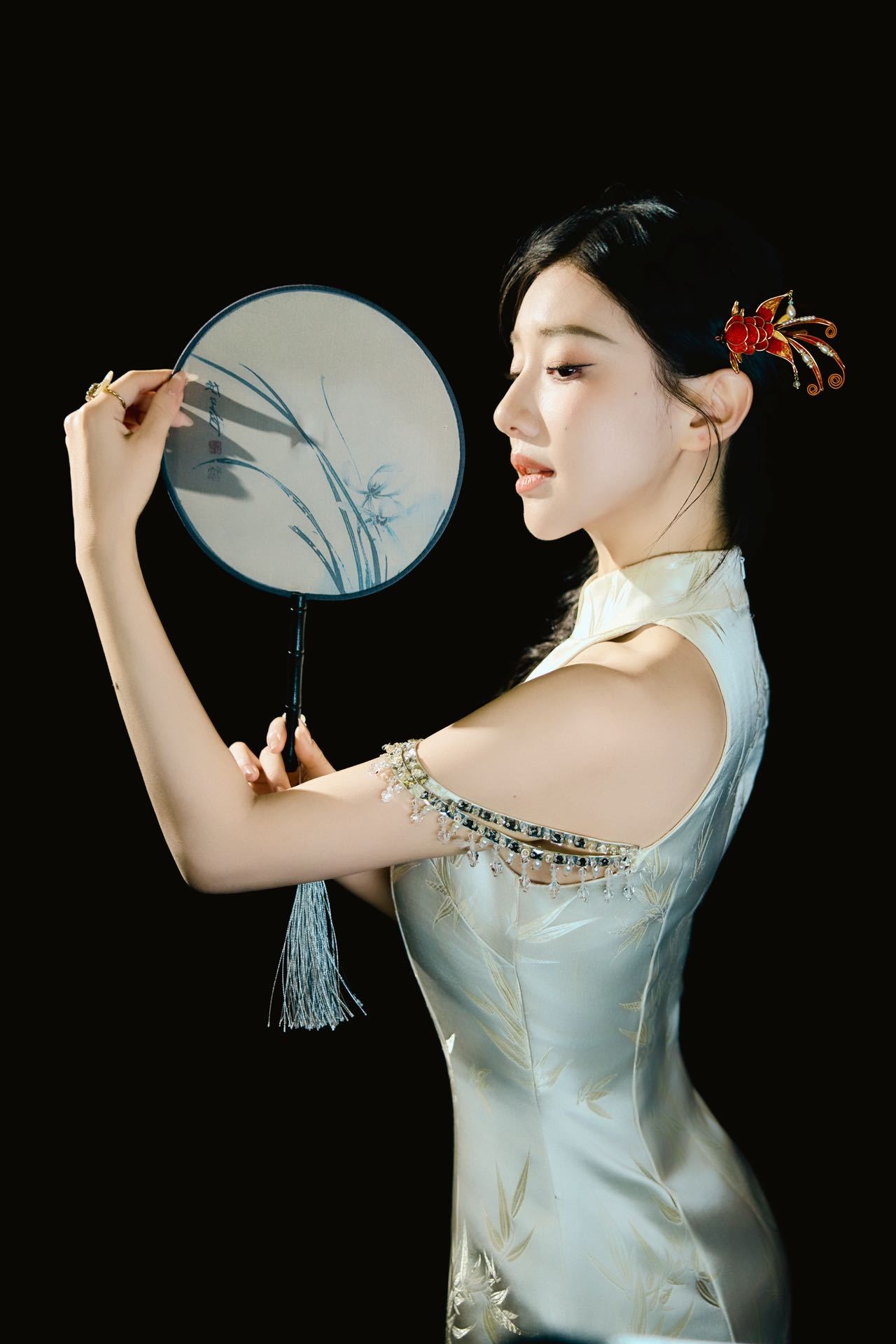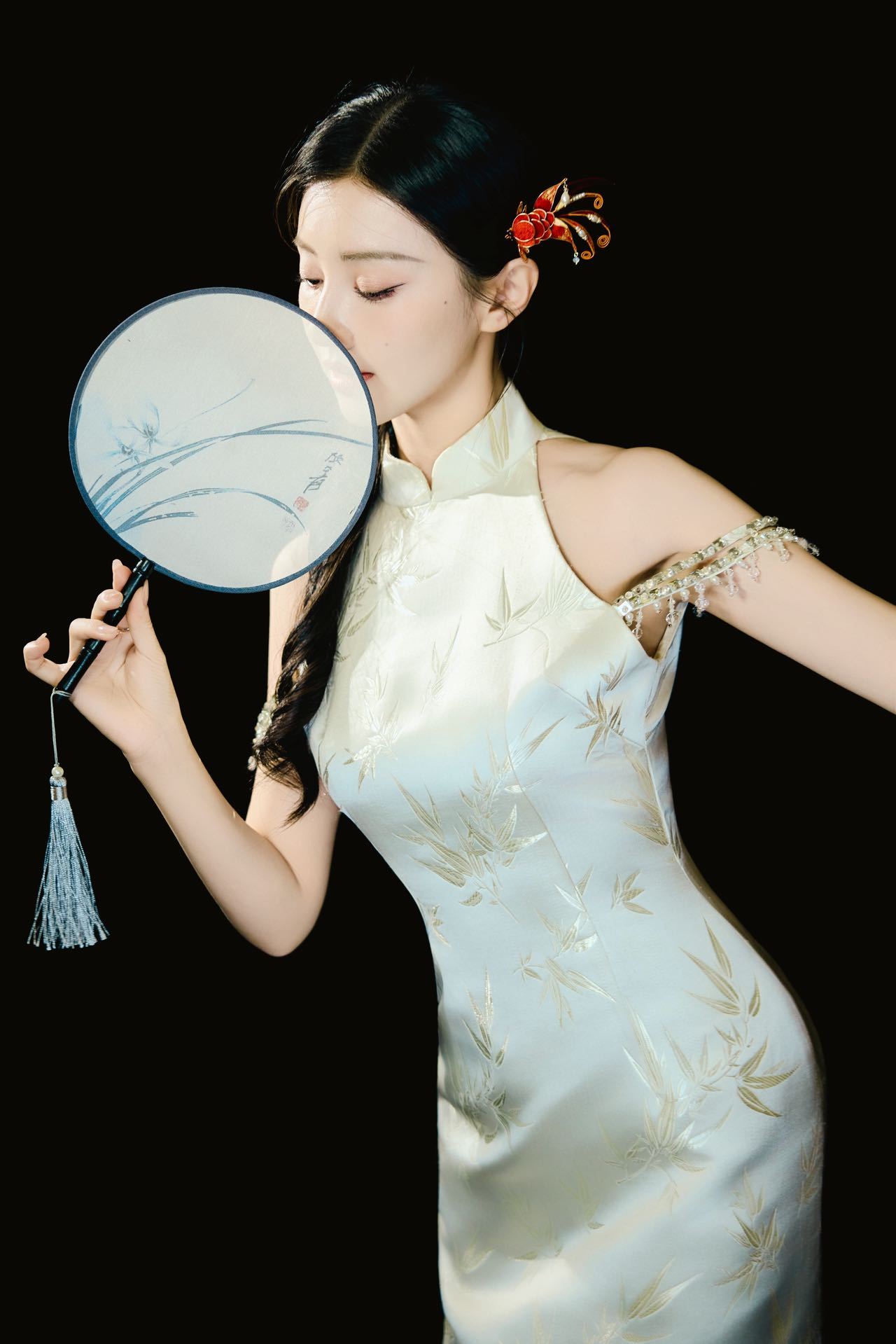 王鹤润央视跨年美成啥了 救命!王鹤润这造型直接戳我心巴!浅杏旗袍配竹叶暗纹,团扇