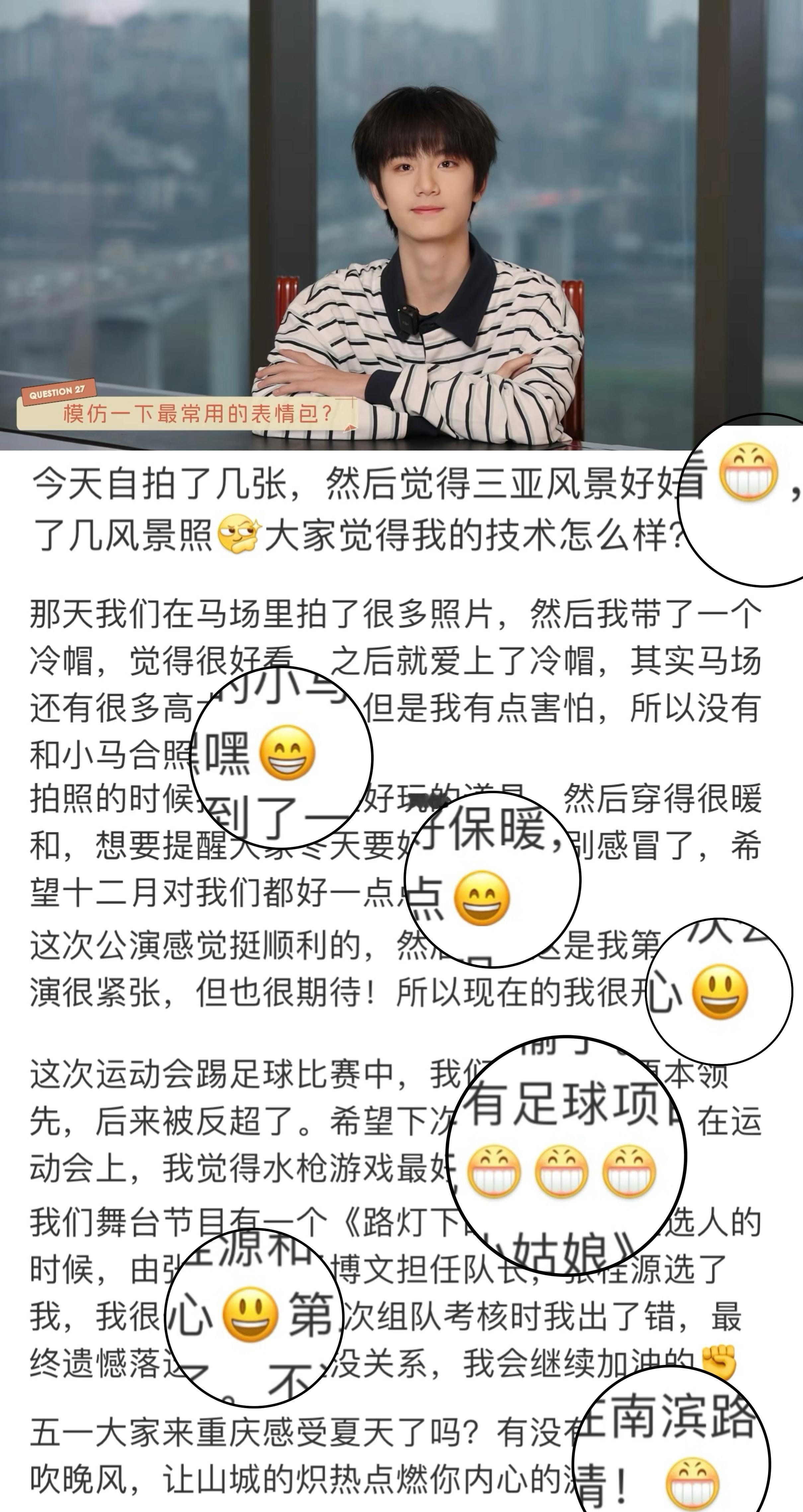 年末了又去翻了一下东东年初的快问快答,才发现这小孩是真的很实诚,完全没有因为自己是练习生是爱豆预备役就美化自己,喜欢什么就是什么,特别淳朴真诚的一个乖宝宝,不知道三亚饭撒那几秒你许的愿望是什么,我只希望你的愿望都能实现。善良,真诚,勇敢,纯真,坦率的好小孩呀,我希望2026年对你好一点🥲🤲