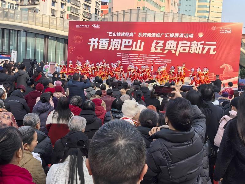 活动分为诵读展演、主题展览和成果展示三个板块。在“书香润巴山经典启新元”诵读展演环节,市图书馆公益培训班“童声悦读”班、“作文起步”班、“双语”班学员分别带来《你好,2026》《如愿》《那次玩得真高兴》《美丽的望王山》及英文情境剧《TigerisComing》《MyMotherlandandI》等节目;巴州区第一小学学生诵读《千字文》与曲艺展示《戏腔舞步》,巴州区第三小学合唱《黑猫警长》等,充分展现了“巴山娃”良好的精神风貌和文化素养。