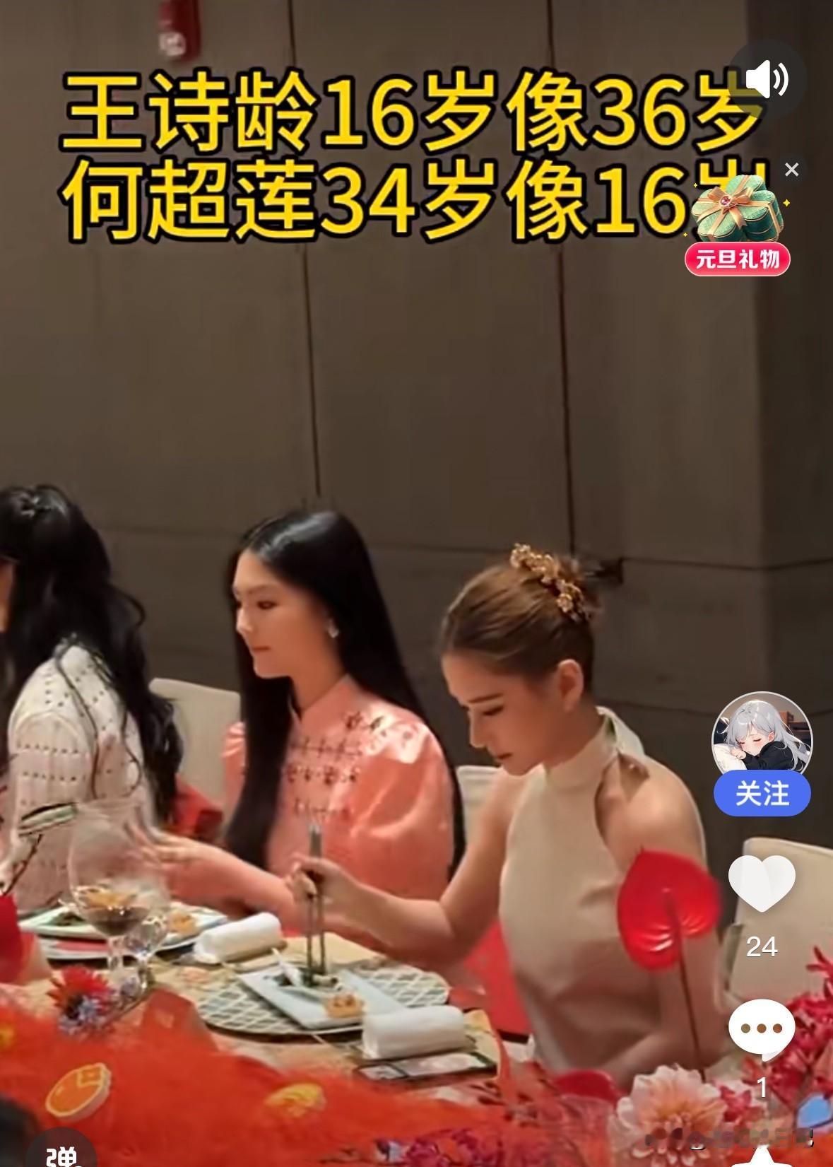 网友评论,王诗龄16岁像36岁,何超莲34岁像16岁,看图片,网友形容的还真贴切。 日前,两个人恰巧坐在紧挨着的座位吃饭,王诗龄才16岁,但是看着非常成熟,也跟她骨架大有关系,旁边的何超莲看着好像比她还年轻。 王诗龄像土财主家的大姑娘,何超莲像上海某位资本家家里的小小姐。一个脱俗,一个清新,都很有气质,又各有千秋,一个资本家的小家碧玉,一个大财主家的大家闺秀。 16岁,还是感觉太成熟了!