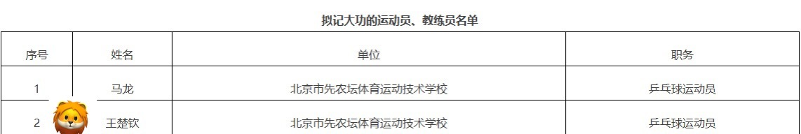 王楚钦 20251231|北京体育局人事处关于全运会及时奖励拟记大功对象恭喜楚钦
